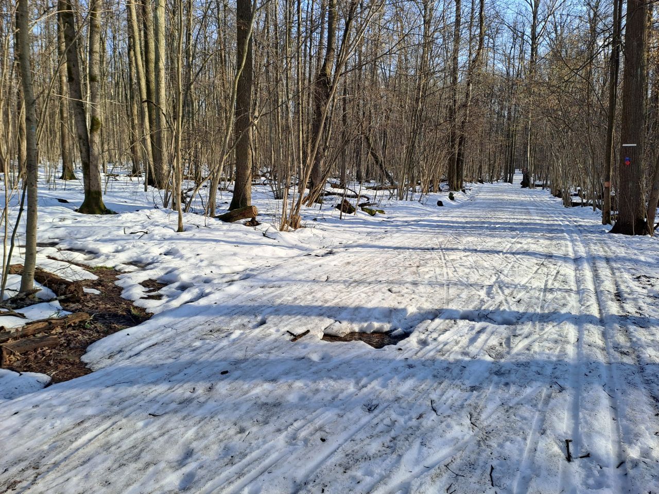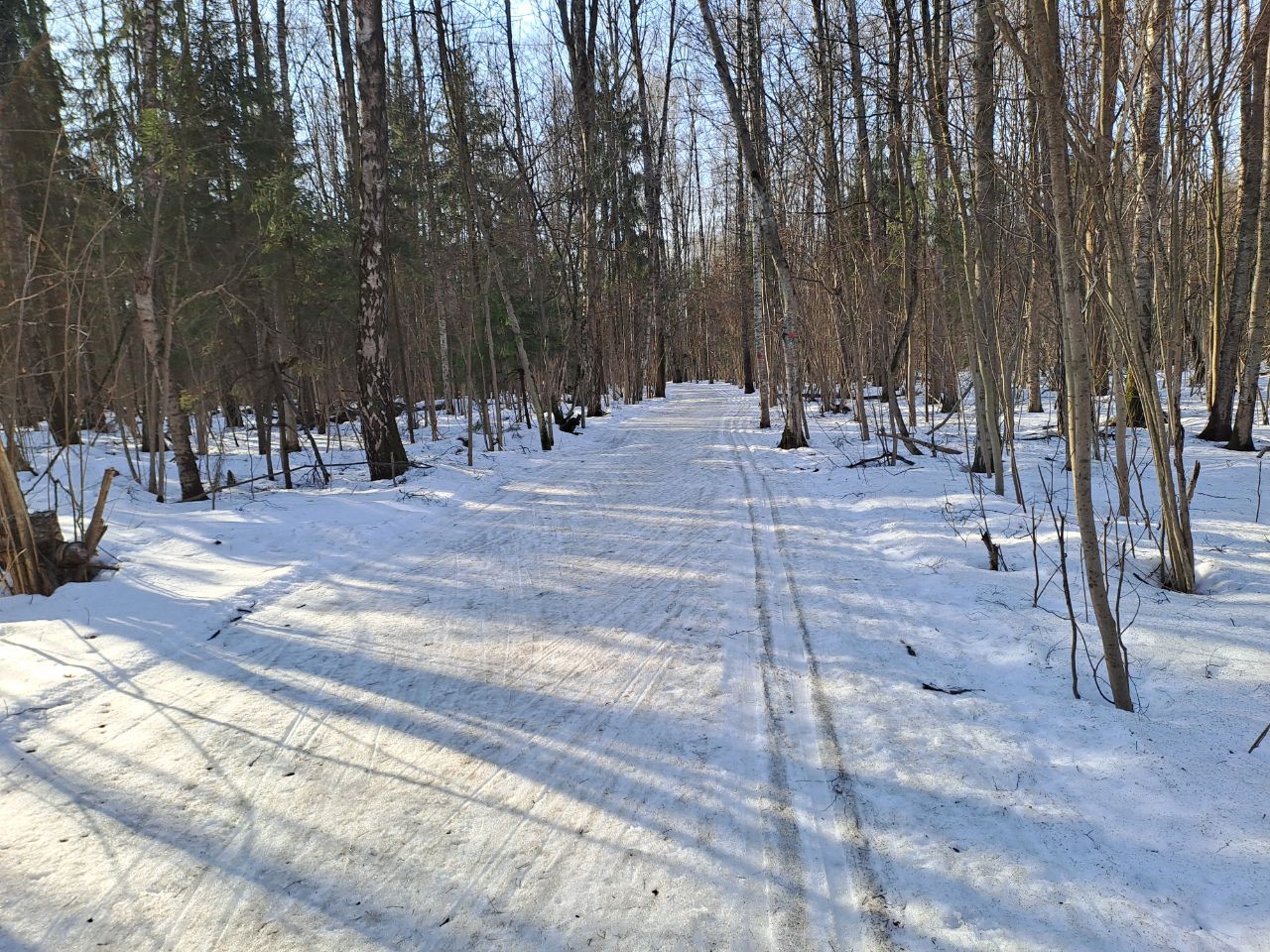 Катал от медика равнинную часть с 13.00 до 14.30. От медика в целом неплохо, но появились разрывы и ручейки. Возвратная часть от газовой станции к медику внизу лужищи и грязно. Проще развернуться и в противоход. В самом Ромашково удивительно, но 7ка и 10ка пока держатся. Лыжня относительно чистая. Мелкие разрывы на агрегатной, около грязного угла, на 5-ке после развилки с 10-кой сплошные разрывы и ручьи. С этой частью боюсь всё.