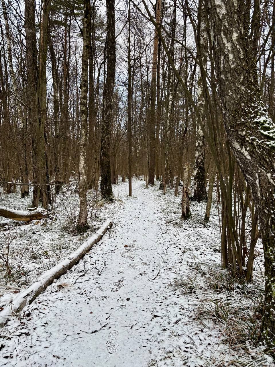 На трассе было много мусора: ельник, ветки, листва. Лапки часто проваливались.