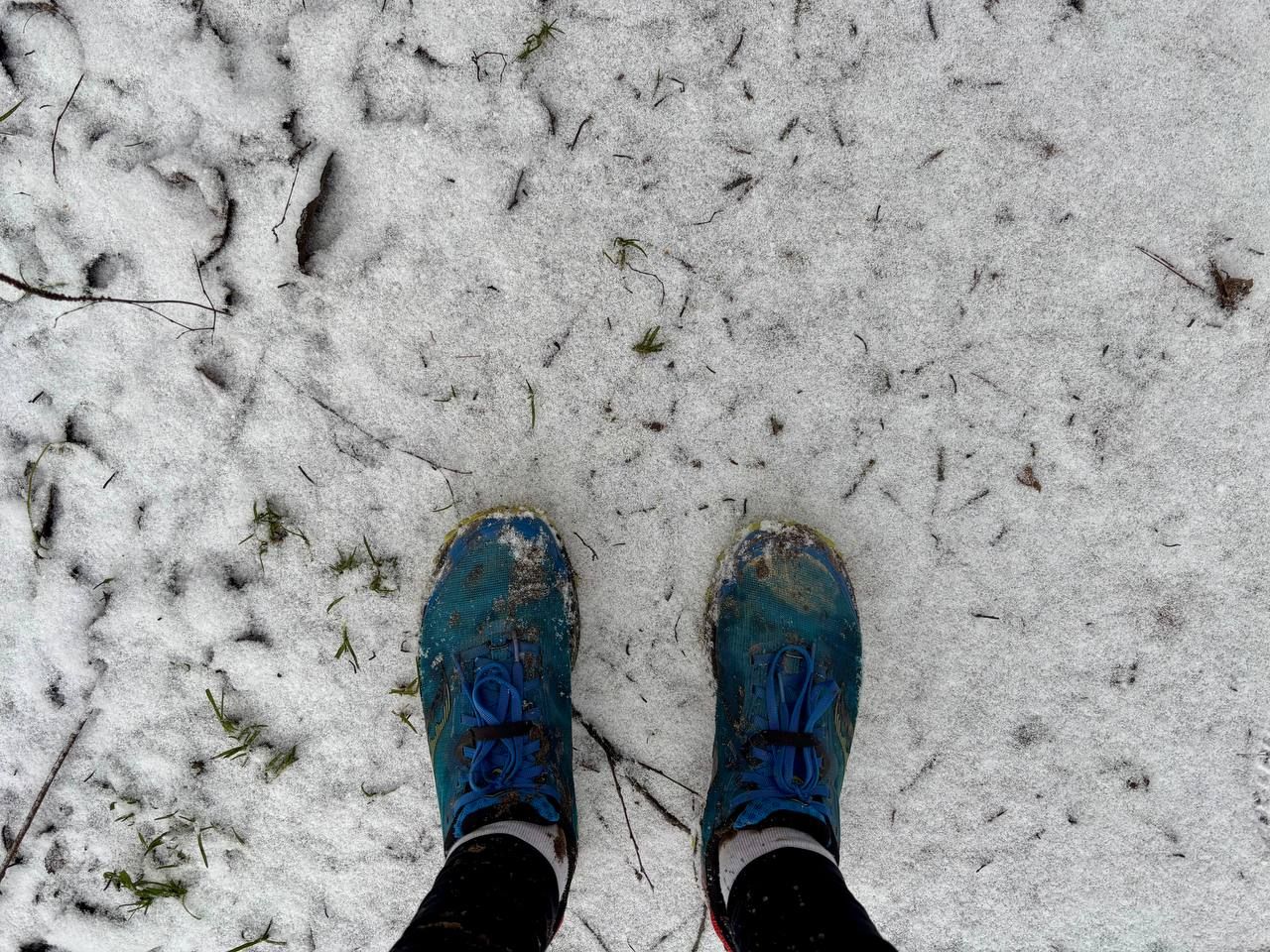 Замерзшая (частично) грязь, припорошенная снежком. Но хотя бы не скользко. Бегать можно :)