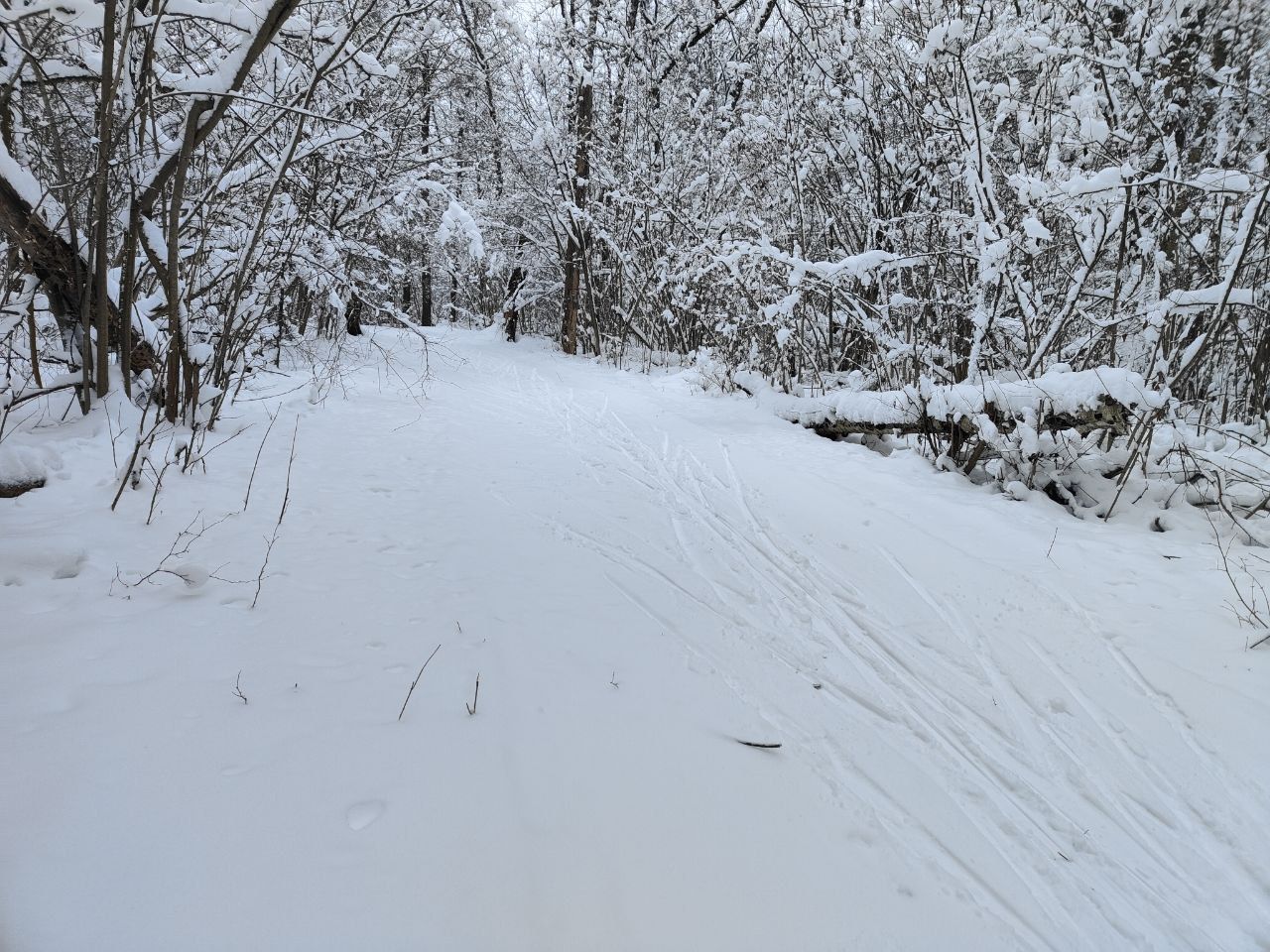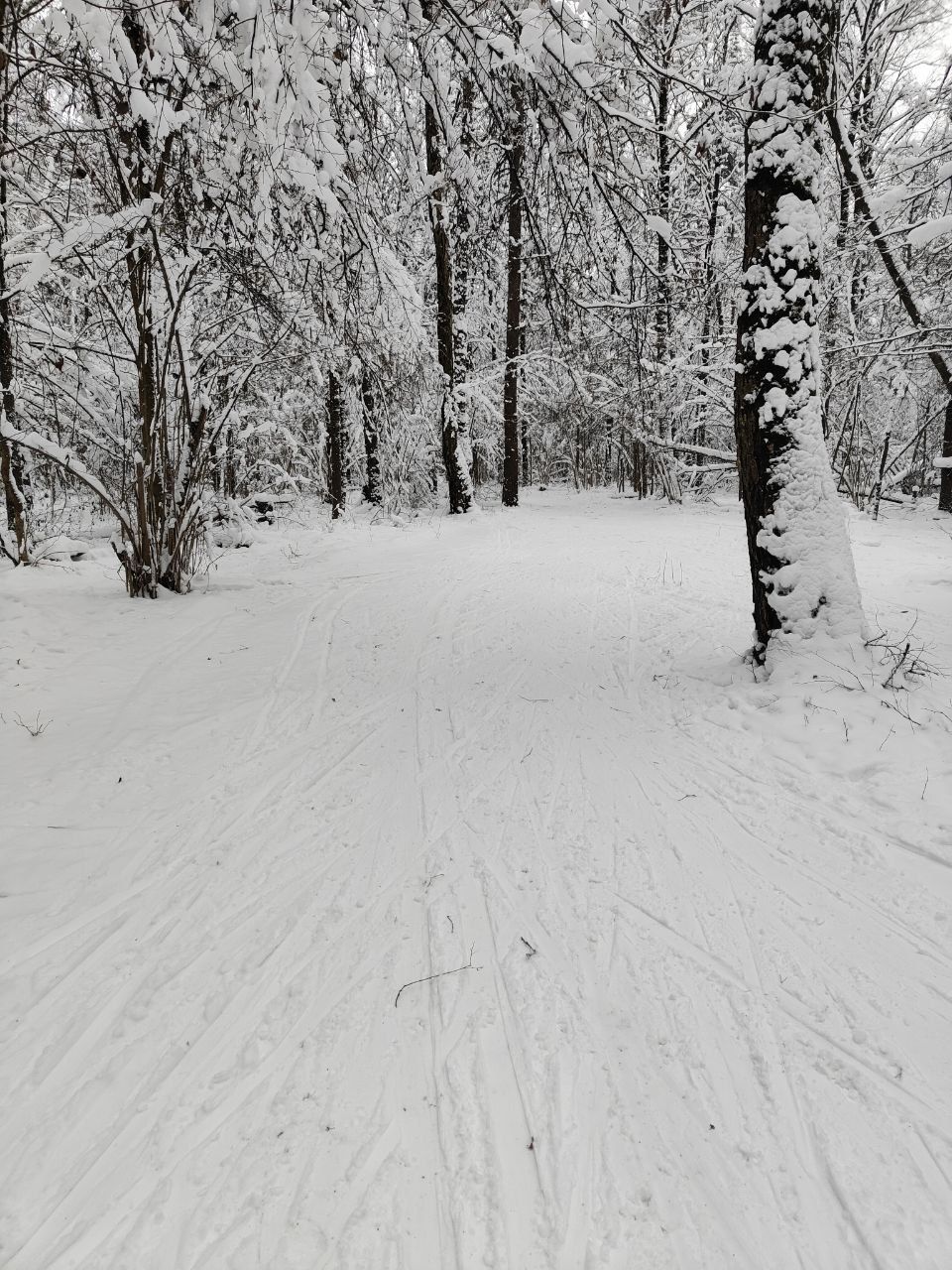 Парк у стадиона: по сути трассы нет, самотопная лыжня и тропинки.