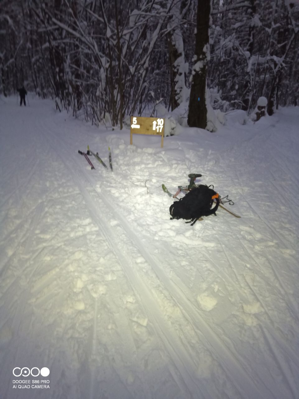 На второй половине трассы работал Габоша, и там было отлично. Однако на первой половине, примерно на 7-8 километре, посреди трассы лежала огромная коряга. Мой друг зацепился за неё и в результате через несколько километров сломал лыжи. Ему пришлось возвращаться до старта пешком.