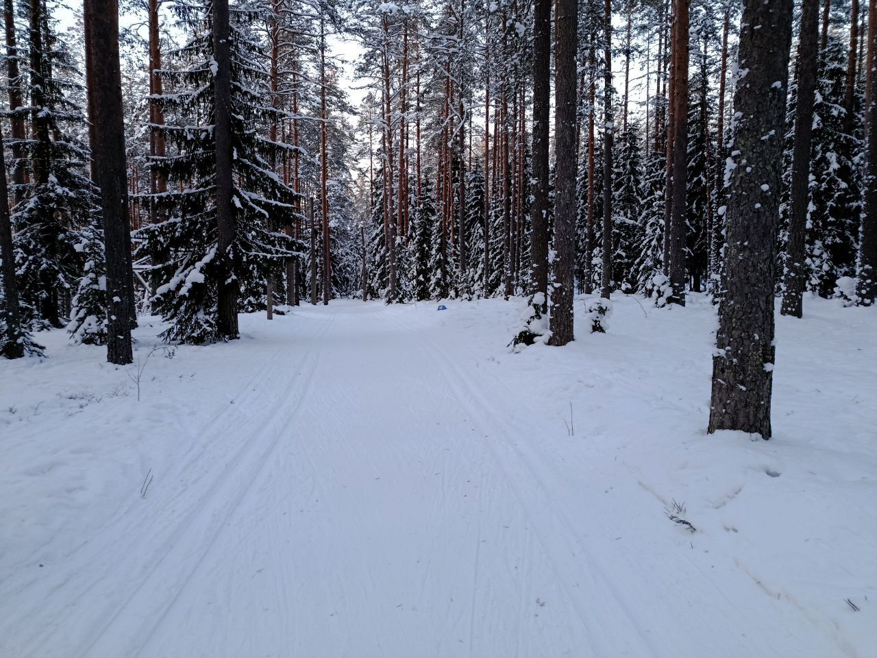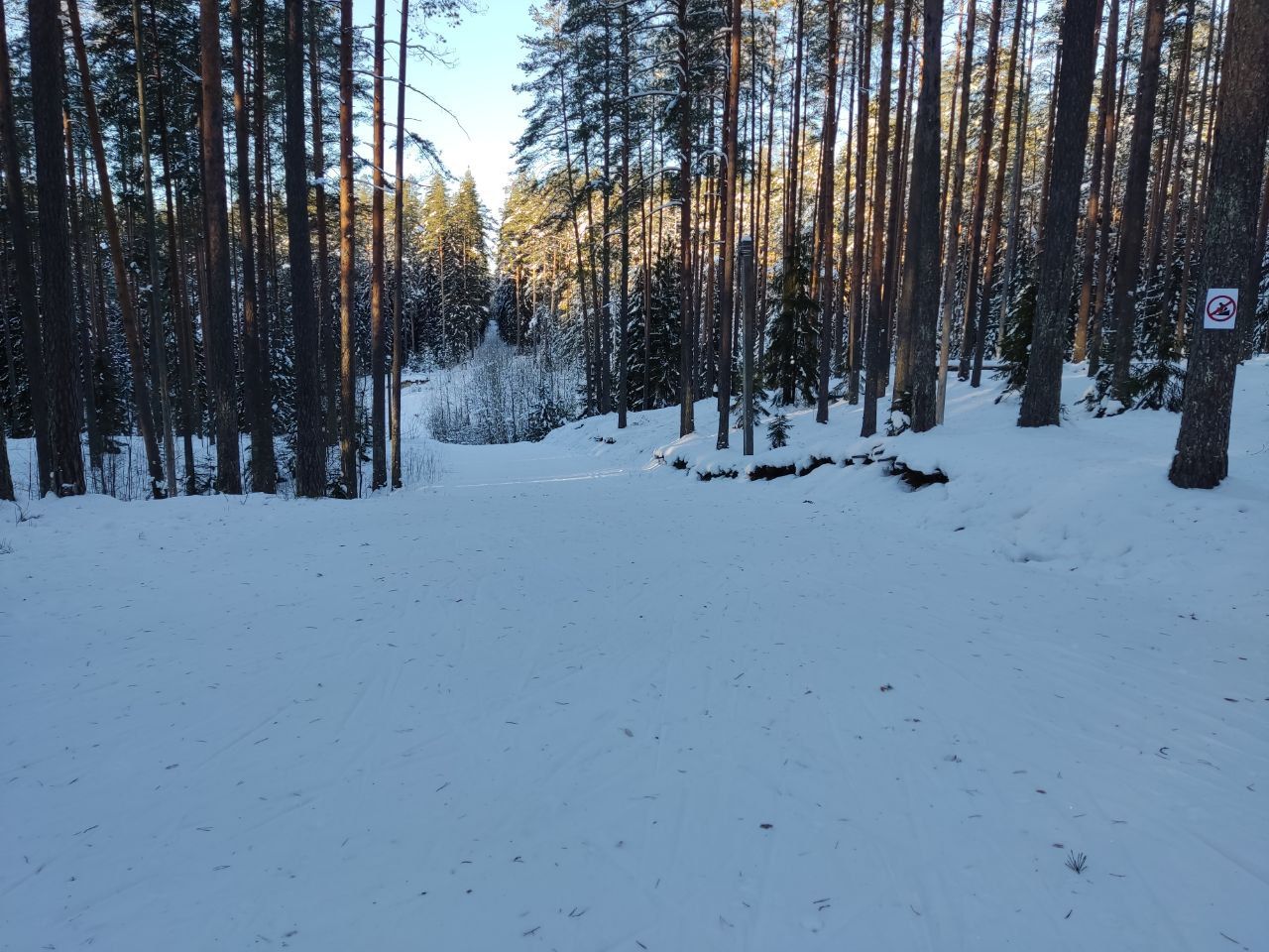 Трасса живописная, интересная. Спокойный 10км круг и спортивная пятерка. Готовится энтузиастами. За счёт расположения в сосновом бору, который работает как термос, снег (трасса) сохраняется даже если в округе всё тает. Есть очень рельефные места с большими горками, при желании их можно обойти. Есть где походить на широких лыжах по лесу без лыжни. При хорошем снежном покрове людей всегда много по выходным. Парковки две, небольшие, у Райволы и у психбольницы, в будние дни проблем с парковкой нет. Проката нет. Рядом находится доступный парк-отель Райвола где можно поесть или переночевать.