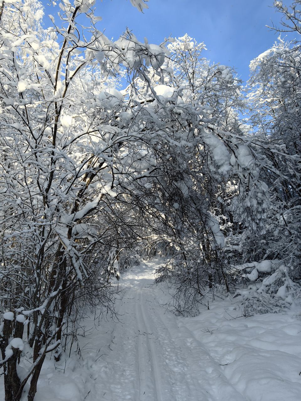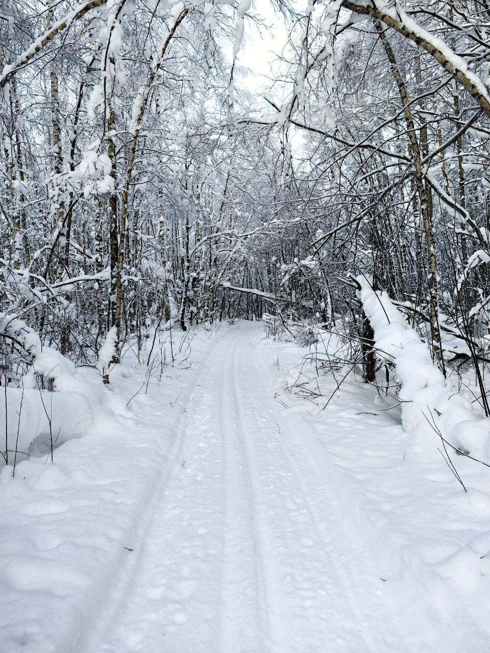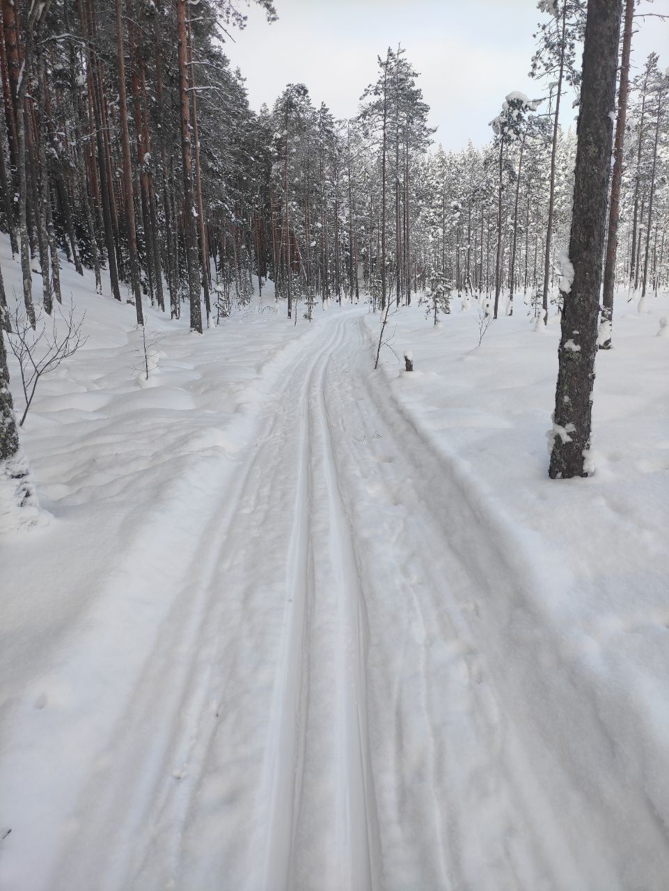 На 15 км Лыжной стрелы в #Шапки тоже хорошо. Мусор присыпан свежим снегом (сантиметров 5 пухляка, если не больше, выпало за последние сутки и пару см после вчерашней Стрелы). На спусках местами подразбито только. А так даже не скажешь, что Стрела была
