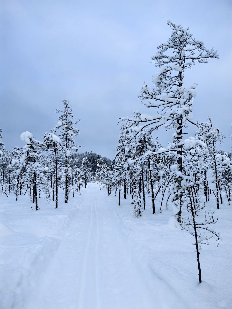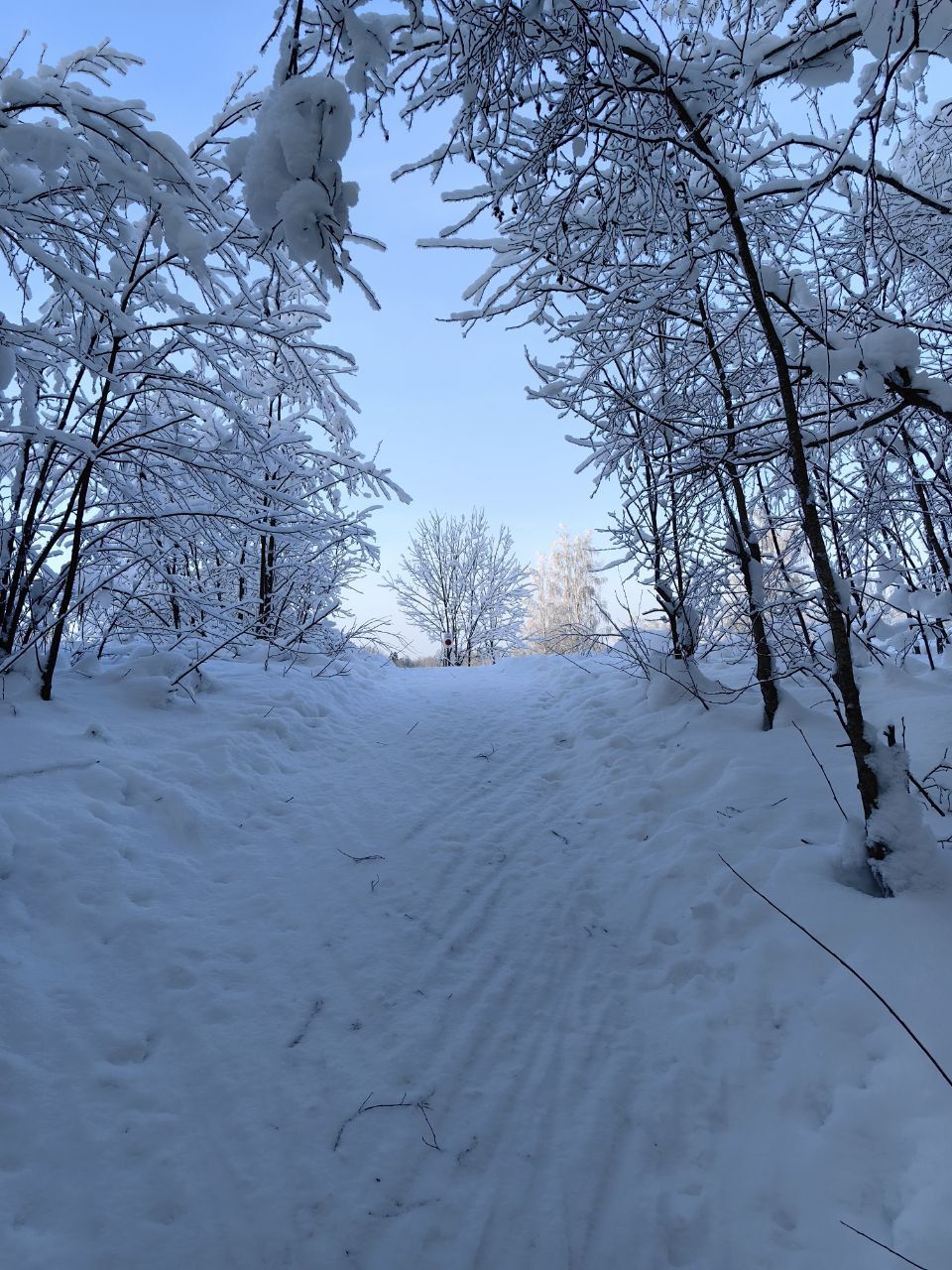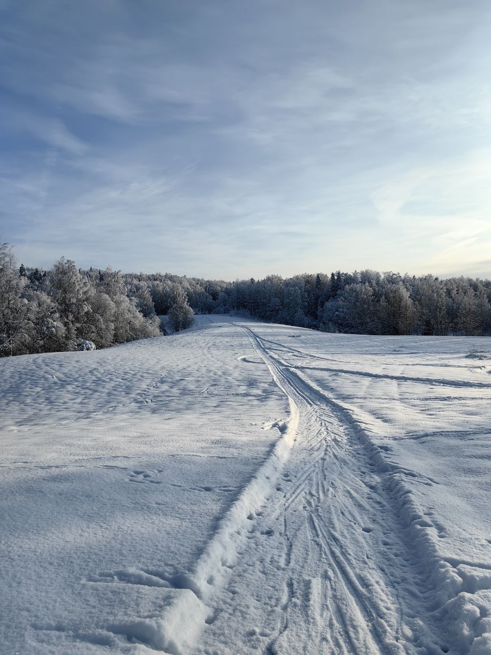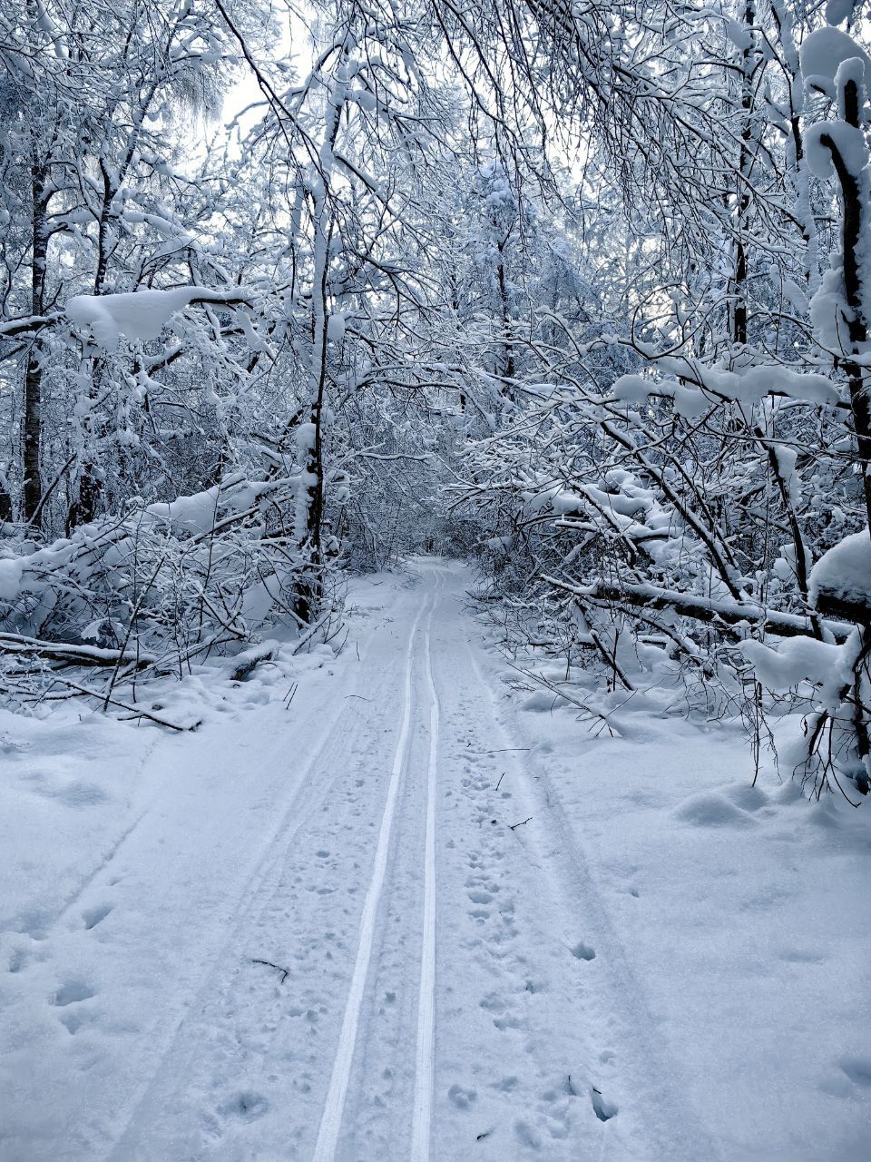 На 15 км Лыжной стрелы в #Шапки тоже хорошо. Мусор присыпан свежим снегом (сантиметров 5 пухляка, если не больше, выпало за последние сутки и пару см после вчерашней Стрелы). На спусках местами подразбито только. А так даже не скажешь, что Стрела была