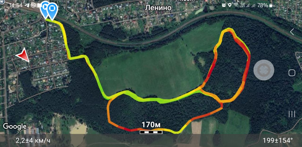 По карте прямо хочу. На месте может не нашел все эти петли, а может их и не было? Ну так, прогулялся, лениво вползать в пологие подъемы и так же с них скатываться. Но 14км все же набрал.