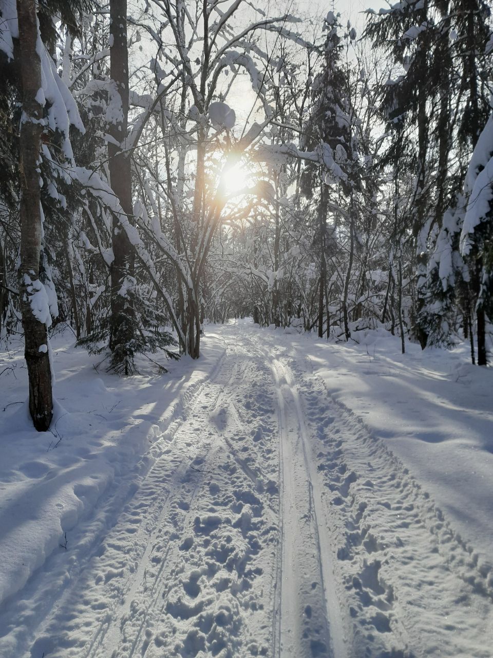 Солнышко, морозец-красота! Ветер северный с поля давал "прикурить", в лесу и со стороны ЖК комфортно. Лыжи взял свои универсальные-вседорожные. Катал в смешанном режиме, где то коньком где то классикой и даблом, как трасса позволяла. Лыжи в целом катили нормально. Люди есть, катаются в основном классикой.
