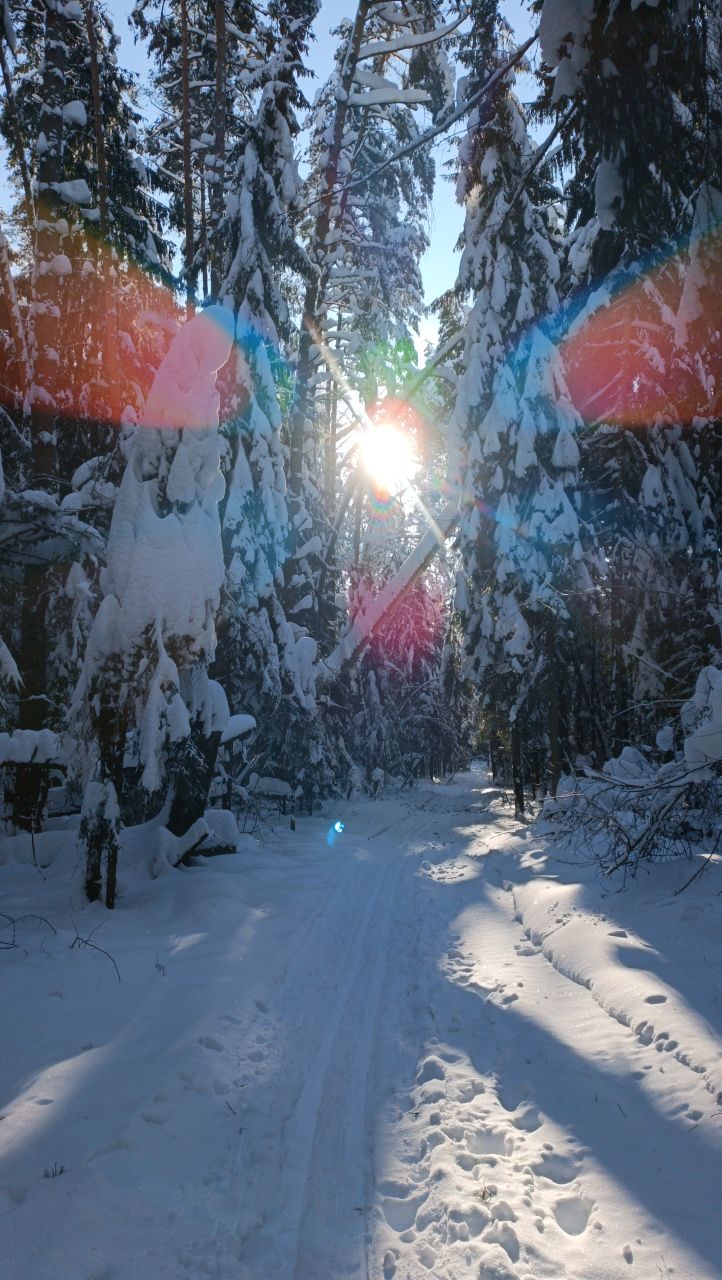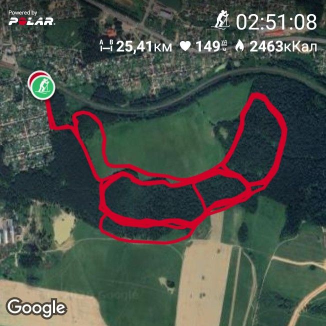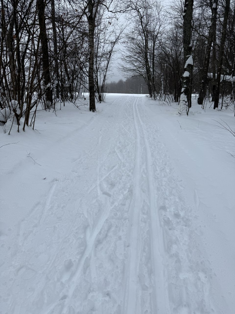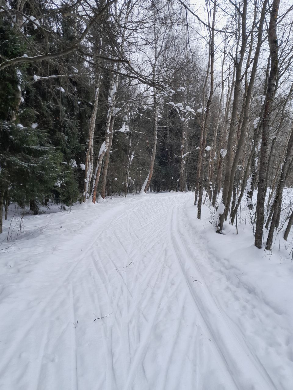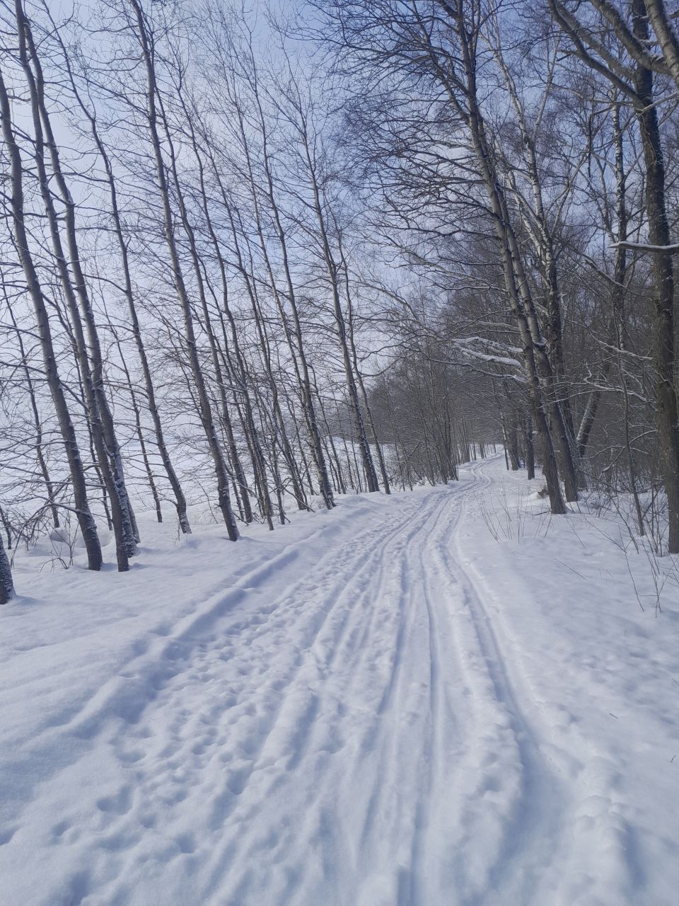 Отлично покатались с семьёй. Вышли в 10, было морозно и леденисто, но потихоньку отпускало. Поле держало по началу и лыжи и палки, через часик палки на поле местами начали проваливаться. В лесу грязновато, веточки палочки, которые сильно тормозят лыжи. В целом трасса в порядке, плотная в целом ровная.