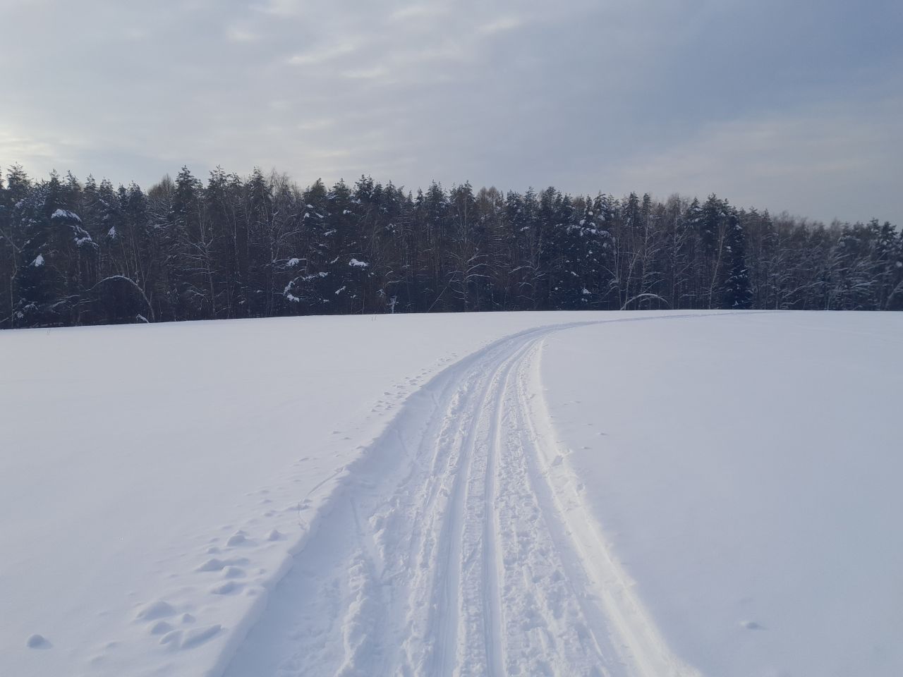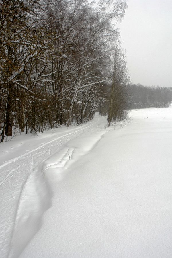 Так то лыжня присутствует, вида как на фотке начала трассы, можно по лесу накружить, хотя и веточки. А в поля по снегоходкам это уж моя инициатива