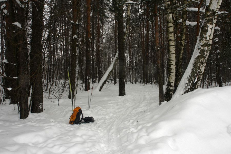 Сходил на разведку. Трасса не готовилась и не известно будет ли, хотя снега уже нормально. Есть классика самотоп. В леске вокруг стартовой площадки болотце не до конца промерзло, снег проваливается местами в жижу. Ждём с нетерпением подготовки трассы в Снегирях.