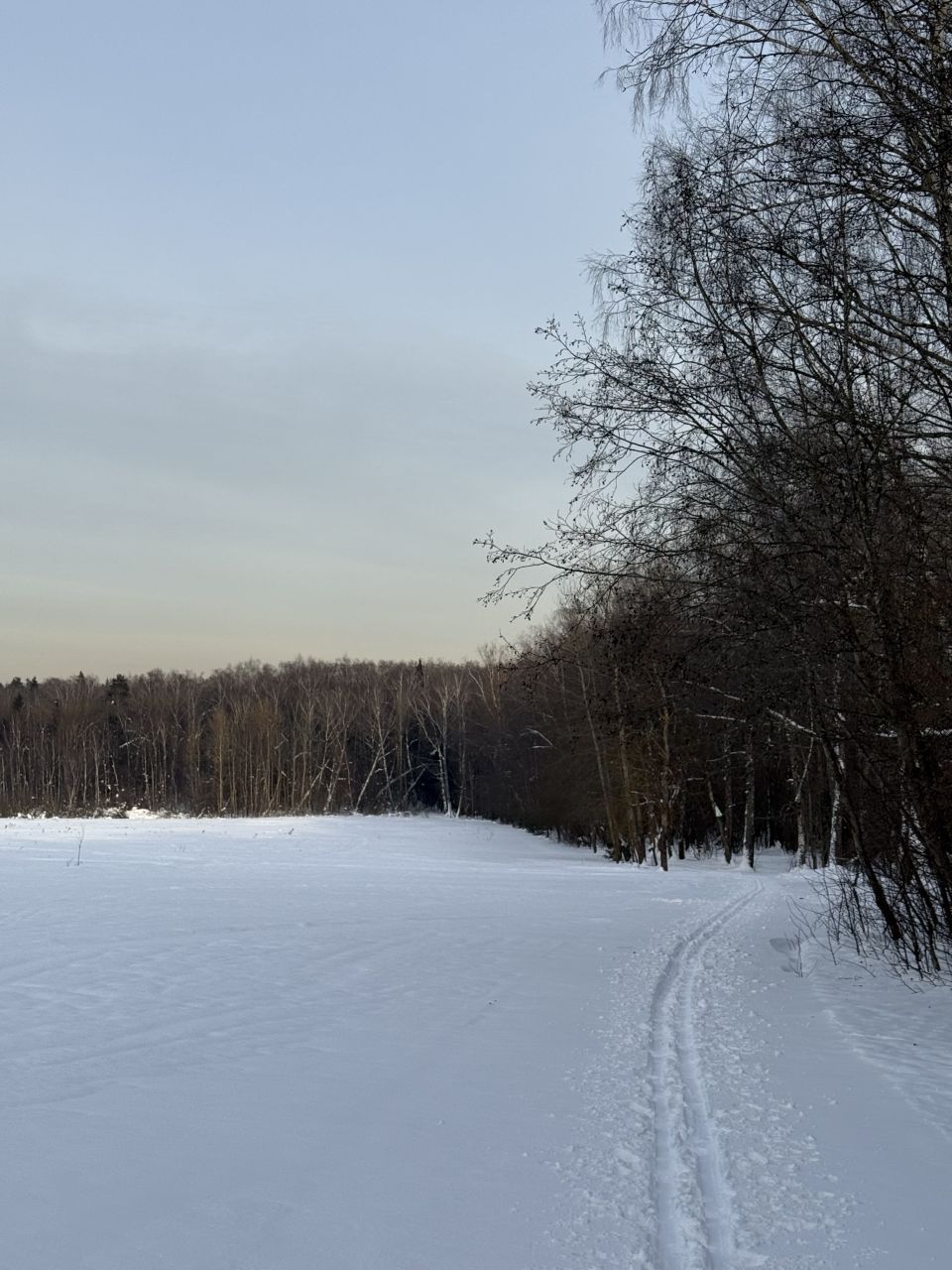 Погода чудесная, -14 C. Ветра нет, и лыжня в поле к северу от ЖК Новоснегирёвский перестала заносится снегом.