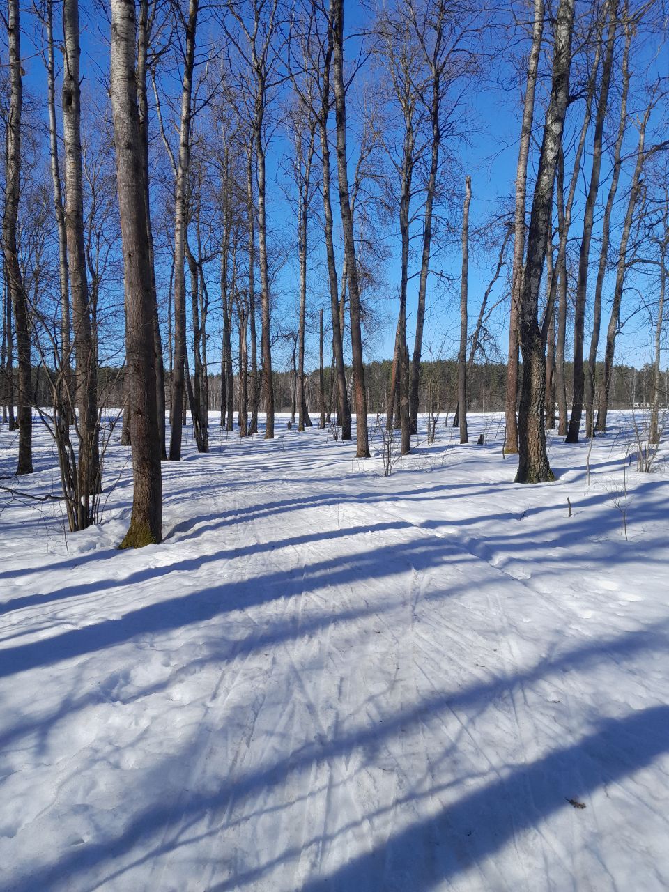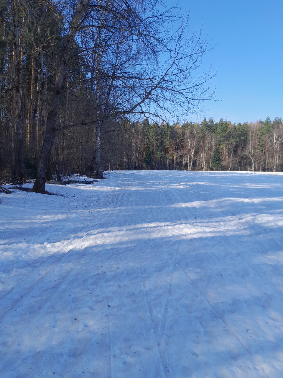 Покатался/потоптался сегодня в Снегирях на коньковых лыжах. Снегири, как всегда прекрасны своей очаровательной природой и чистым воздухом. Погода прелесть, солнышко начинает пригревать, дело к весне идёт. Трасса не готовилась, исключительно самотопная классика, местами проваливающаяся. Снега свежего на трассе по щиколотку, сыпучий, под ним чувствуется более менее твёрдое основание. Палки 175см, местами, особенно на полях, на половину))) людей немного, но есть, катаются классикой.