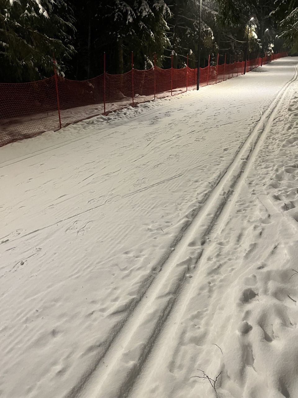 Есть классика, есть ратрак: готовят трассу под конек. Края склона огорожены сеткой.