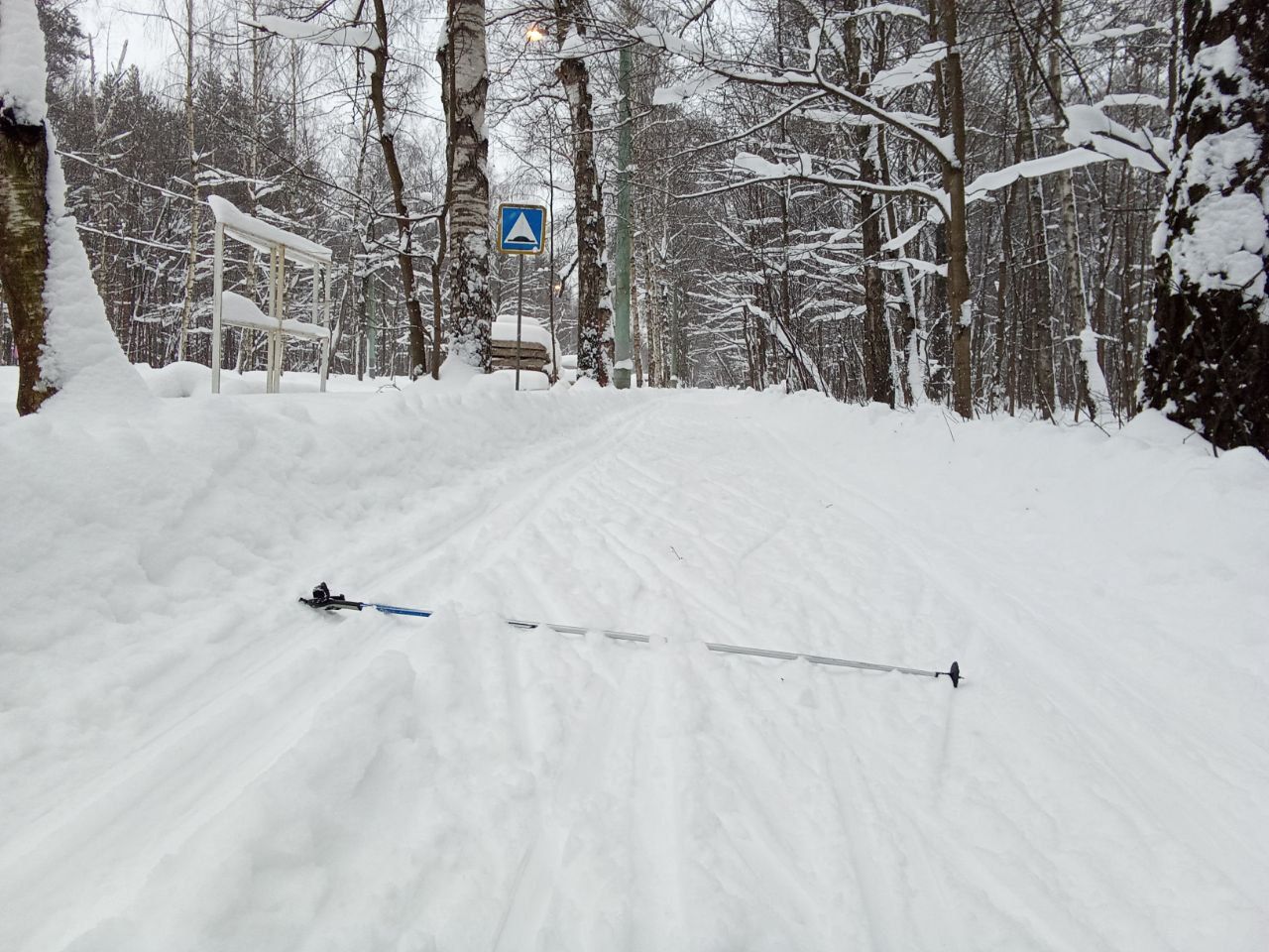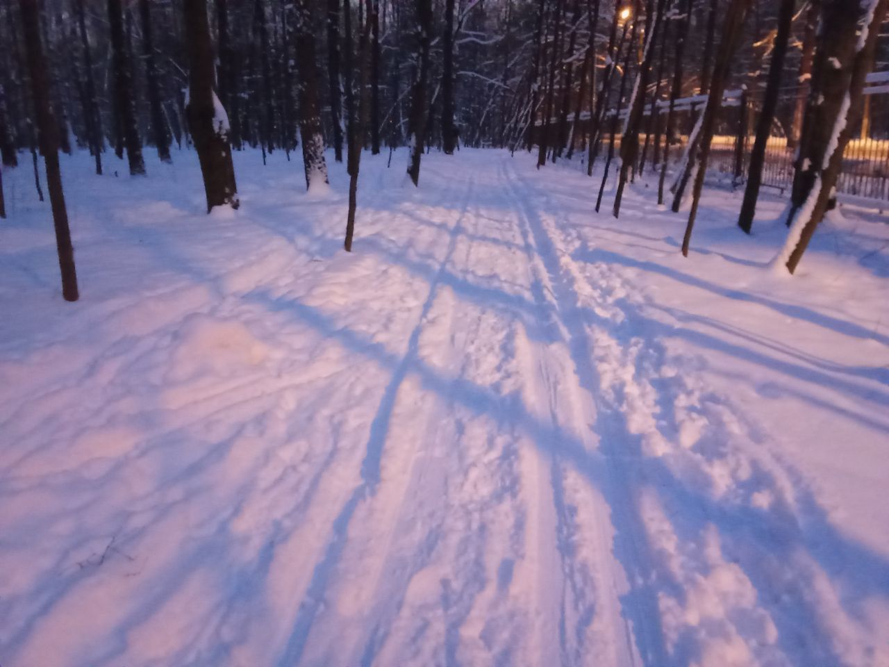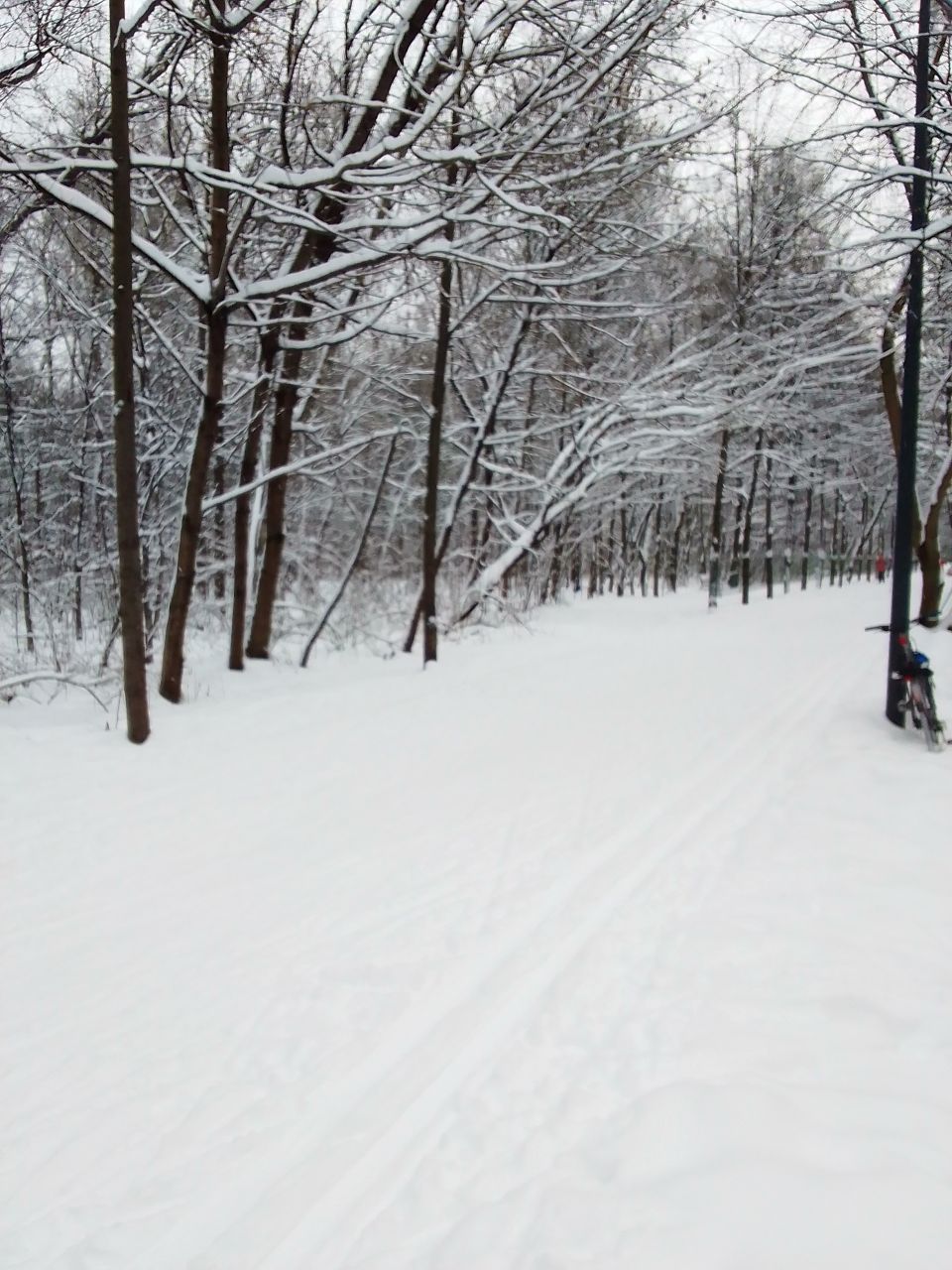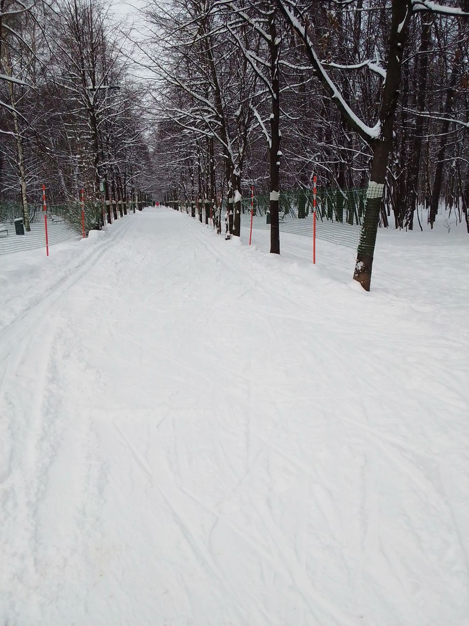 Классика самотоп- по периметру парка. Ну и круг на 2-3лучевом. Классикой кататься неудобно. Лыжни как таковой нет. Сильно устает спина держать равновесие.