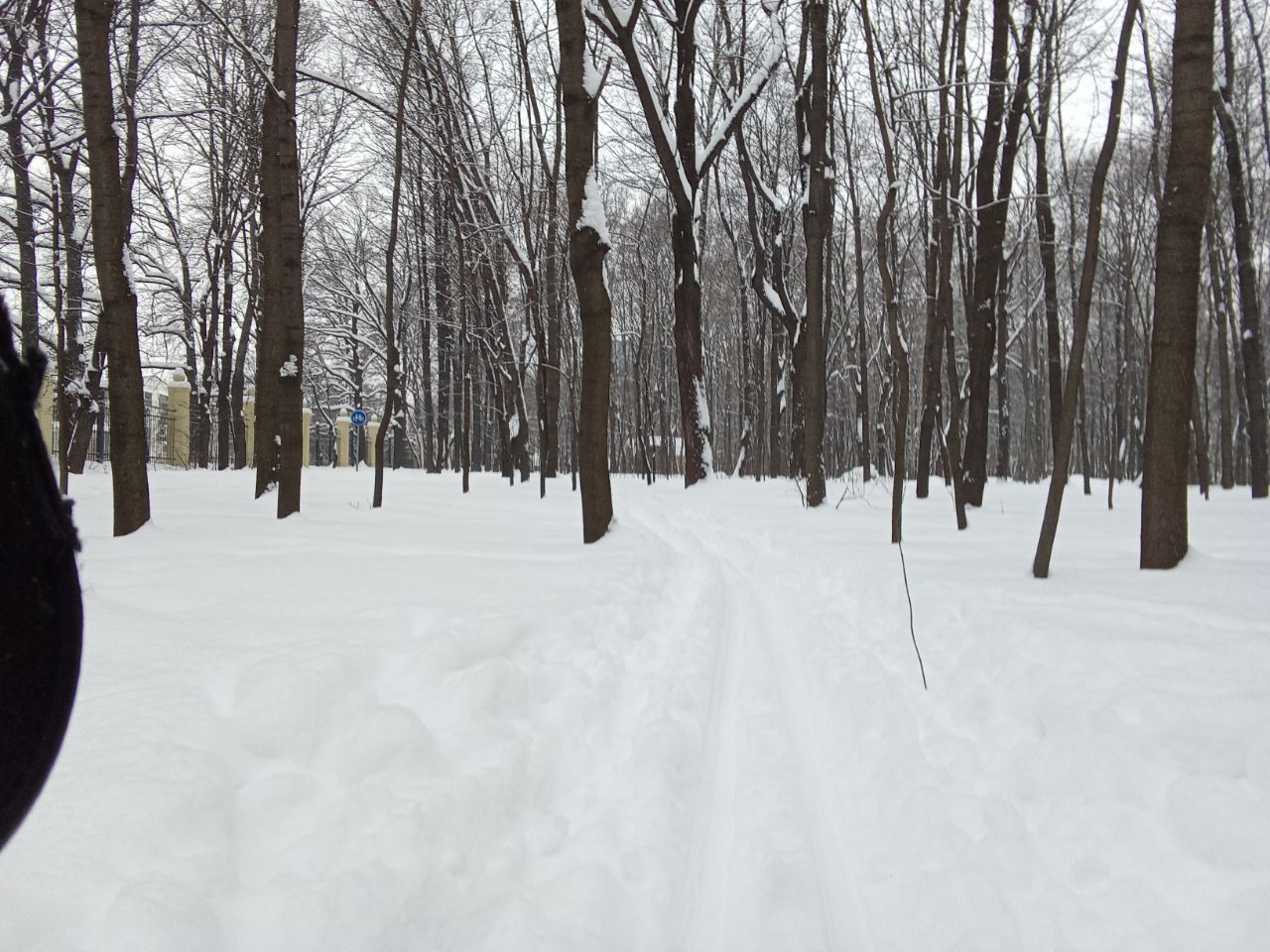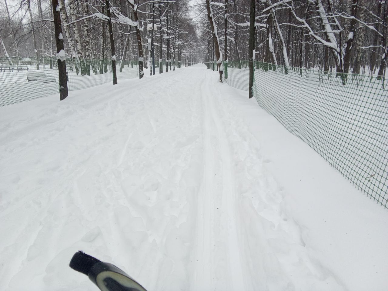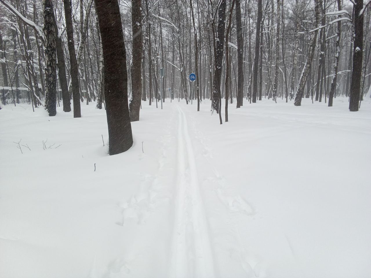 Достойная лыжня по всему парку. Не затоптана, область для палок примята бураном. В этом году на пешеходные дорожки не сыпали крошку!