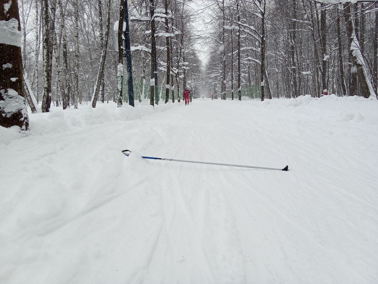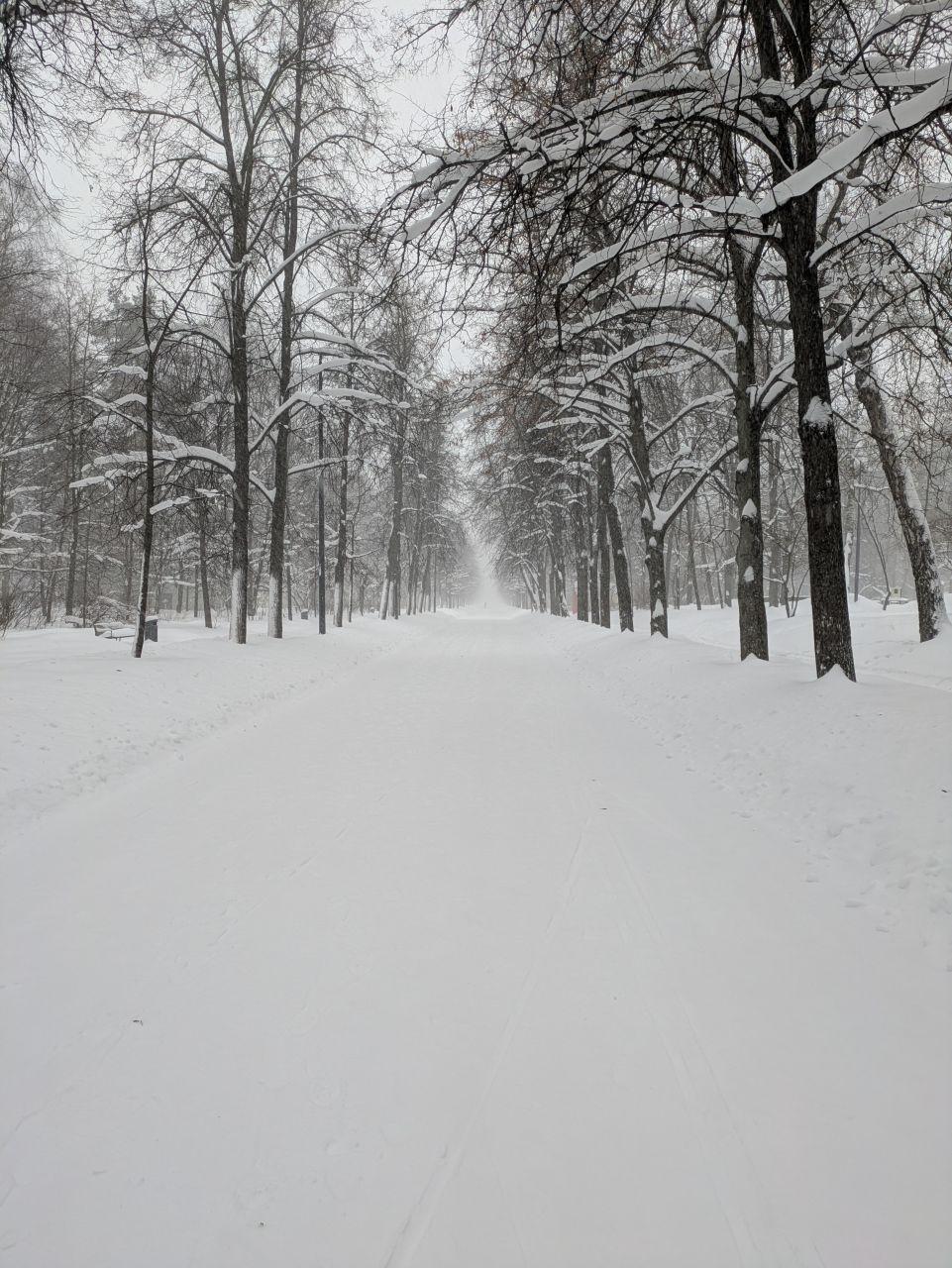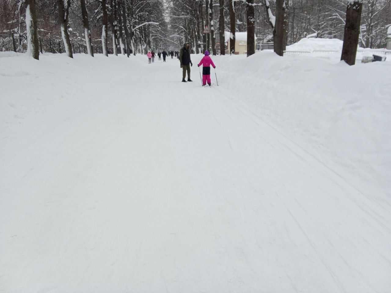 Достойная лыжня по всему парку. Не затоптана, область для палок примята бураном. В этом году на пешеходные дорожки не сыпали крошку!