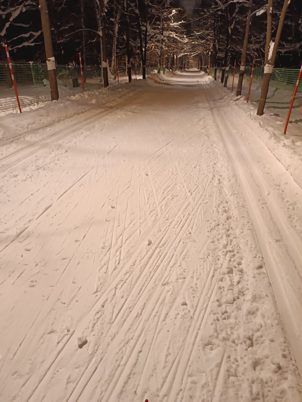 Сегодня вечером нормально. Снега конечно насыпало, но лыжники прикатали, весь круг проезжаемый. Скольжение неплохое