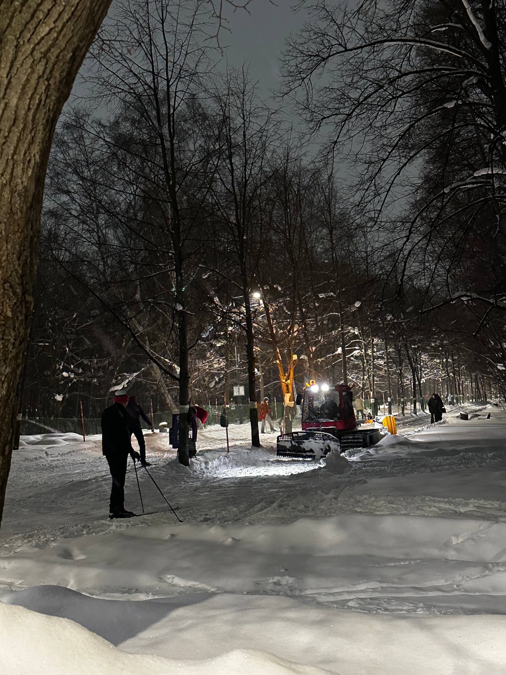 Дополню коллег Михаила и Стремглав - 9 вечера, от тропы здоровья к центру парка насыпано и слегка укатано метров 50, ещё лежит несколько сугробов, но пушка пока "молчит". Будем надеяться, что завтра она хотя бы "заговорит"... И начатое дело доведут до конца.