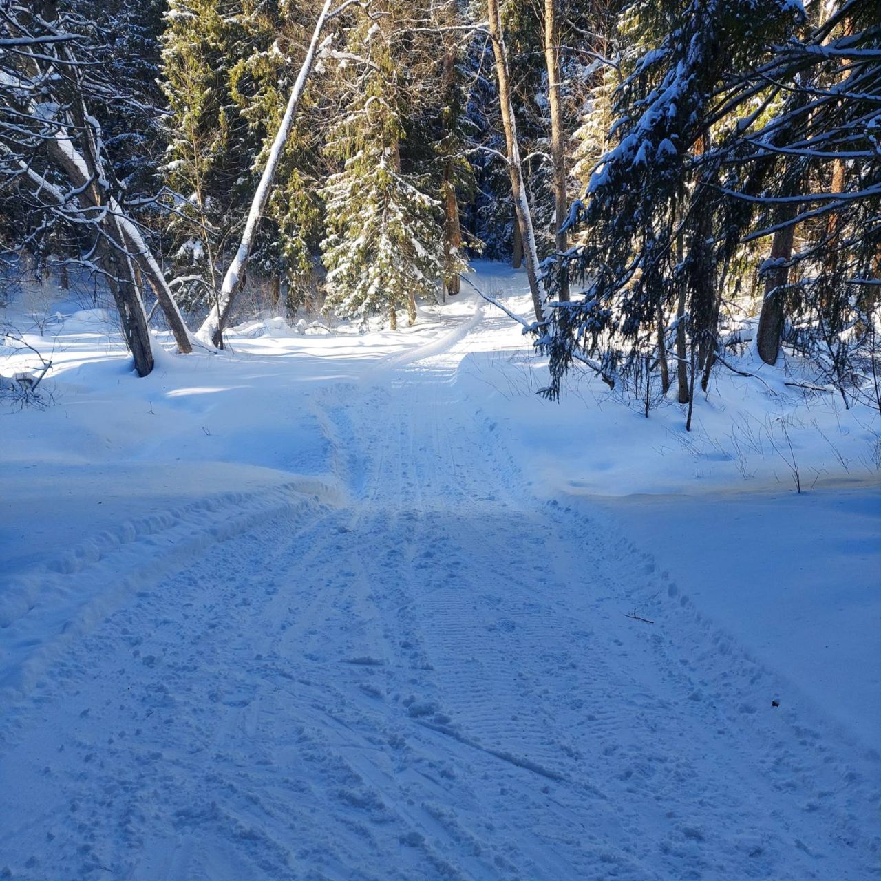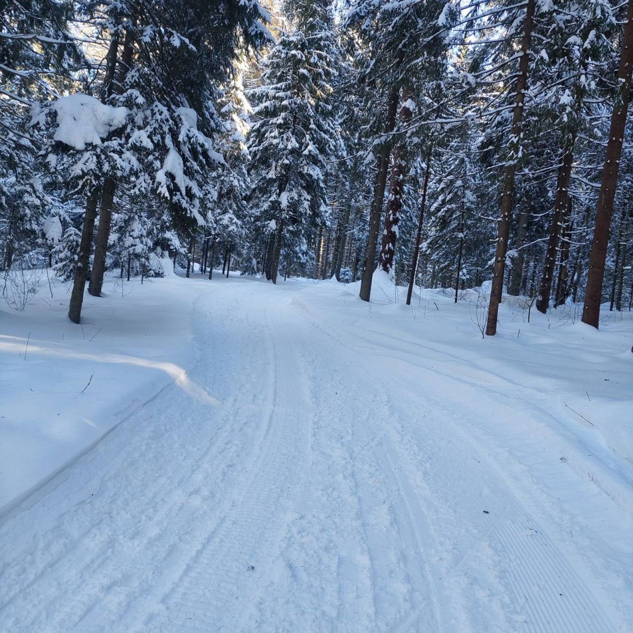 Трасса после снегопада мягковата. Ратрак маленький и не может прикатать как следует. Только конёк Несмотря на большой снежный покров классику режут очень редко и мало по протяжённости. В лесу чисто, стадион и поле также. В общем в е неплохо. Но к сожалению трассу сильно поспорил какой-то с позволения сказать товарищ на снегоходы. Из за этого много заносит и рытвин