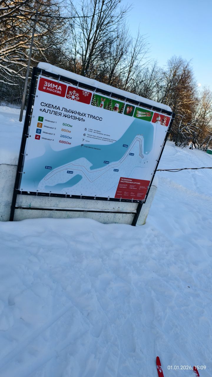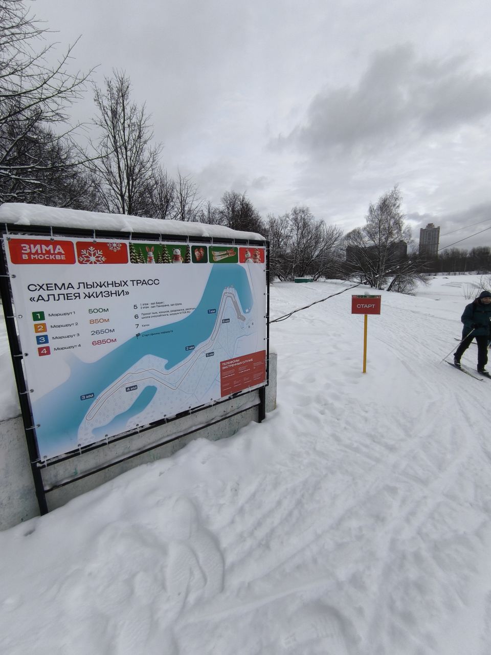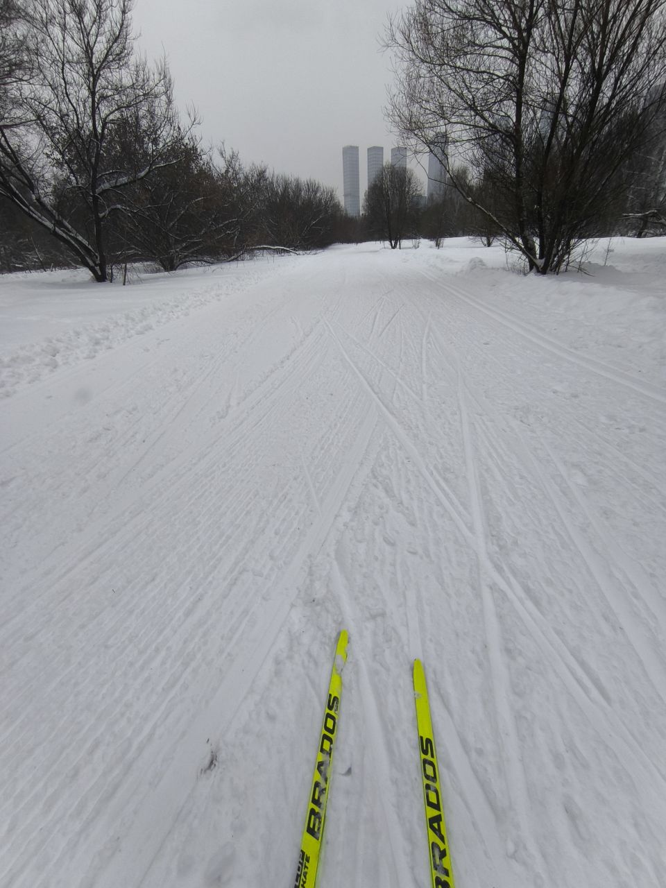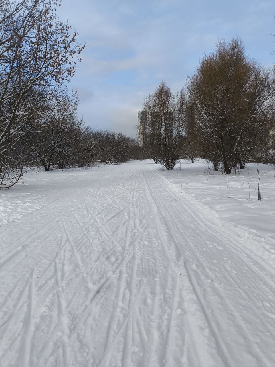 Трасса начинается от проката комплекса строгино wake park и проходит вдоль реки доходя до полуострова и обратно. не все участки трассы одинаковы. сегодня на полуострове работает ратрак, трасса еще не одинаковая по твердости. в начале более жесткая, дальше мягче. есть классика, но она тоже не успела схватиться морозом. скольжение по температуре - после морозных дней удовлетворительно и ниже. Как и в любом парке есть гуляющие жители района. Это, возможно самое печальное противостояние. То что делает ратрак следом затаптывается каблуками с особым удовольствием. Возможно местные жители считают это их обязанностью. Смотреть как только что прорезанная классика спазу же затаптывается двумя парами ног, потом идет кто уткнувшись в смартфон, потом дама с двумя собачками, не хватает нервов. Резюме: место для прогулок но не тренировок.