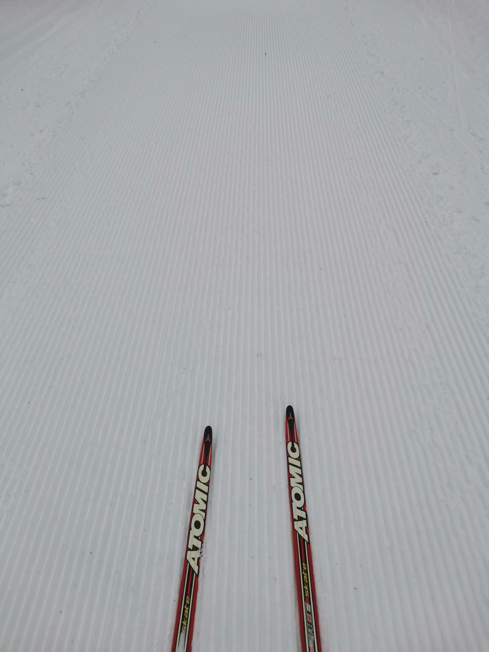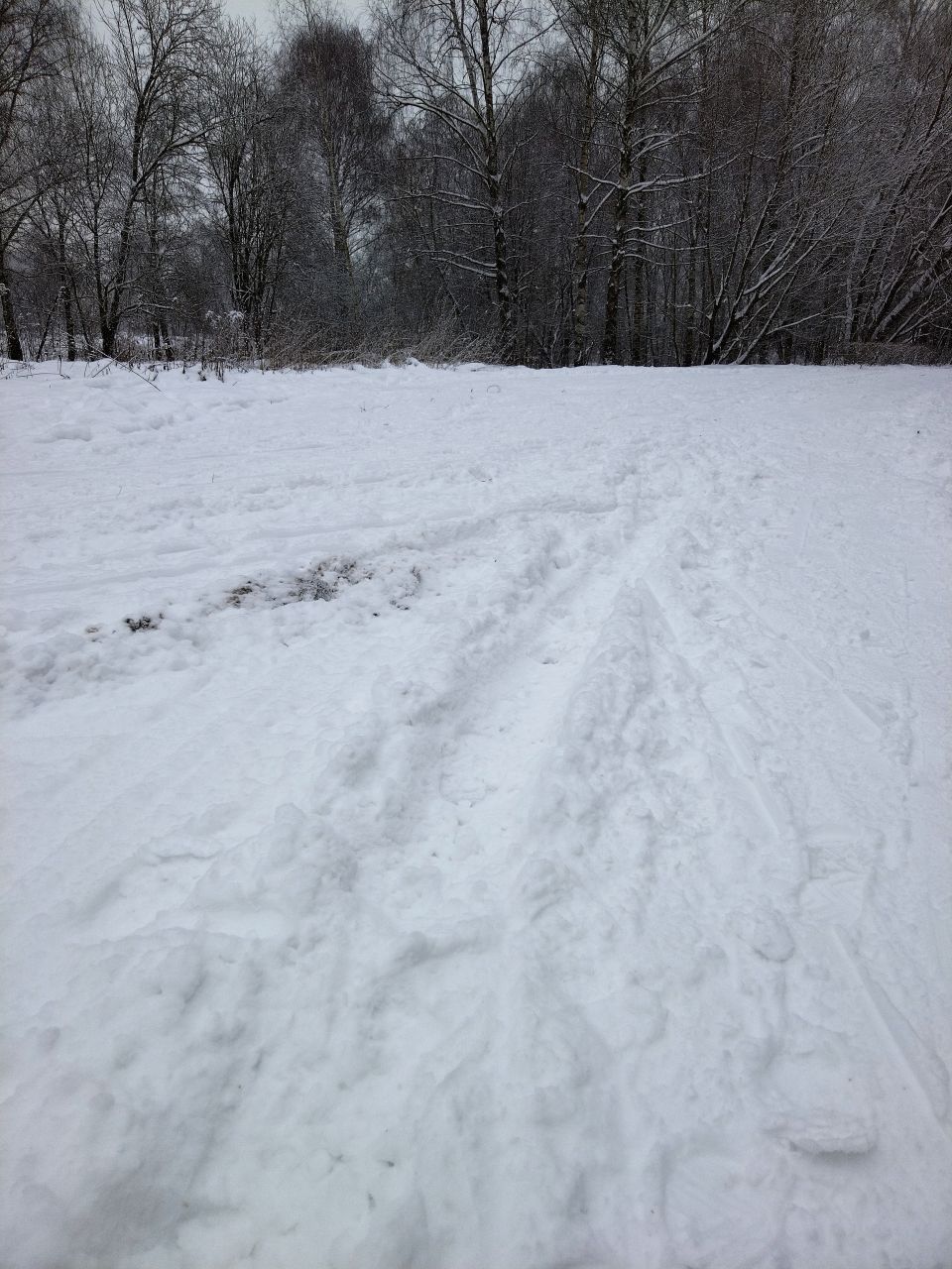 После снегопадов прошел ратрак, но результат не такой хороший, как обычно. Местами снег срезан до земли, а по краям трассы откинутый снег, за который цепляются лыжи. При таком количестве снега ожидали более комфортной трассы. Ждем, когда новый снегопад смягчит эти нюансы