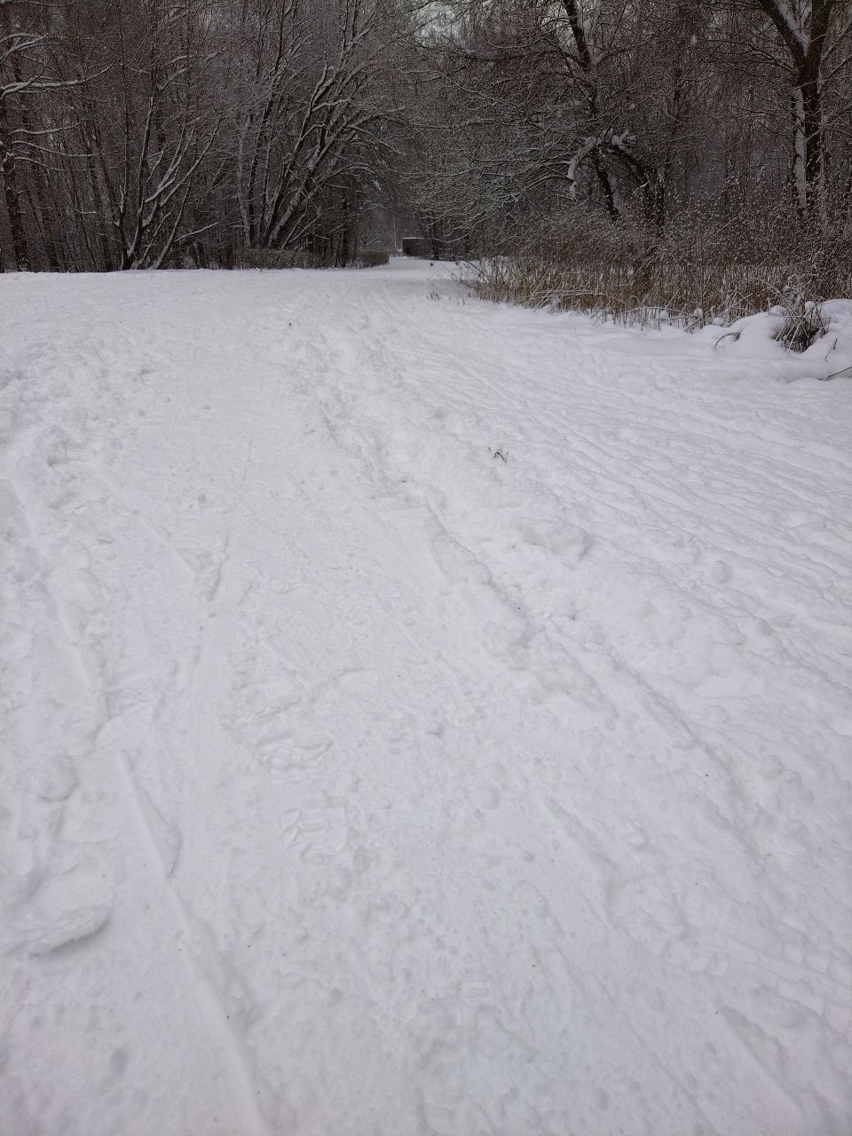 Покататься можно. Видны следы снегохода. Трасса мягкая. На полуострове пухляк, вязнут и лыжи и палки. Как обычно много гуляющих и собак. В общем если лень куда-то ехать а покататься хочется, как трасса у дома сойдёт.