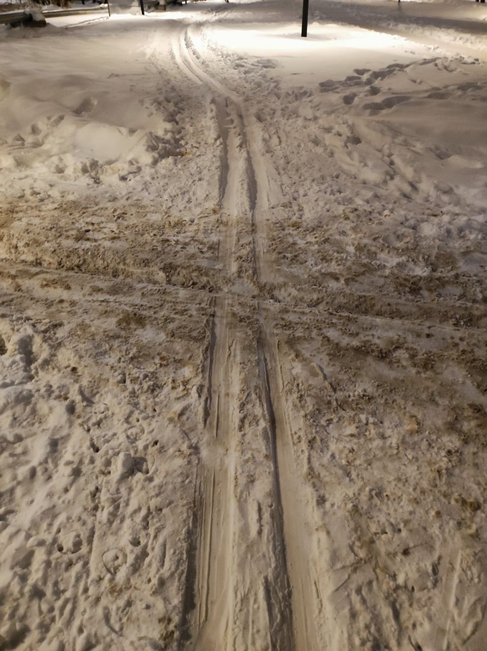 Можно кататься только после свежего снегопада, когда все чисто. Для конька трассы вообще нет. Катаюсь здесь только по свежему снегу после снегопада.