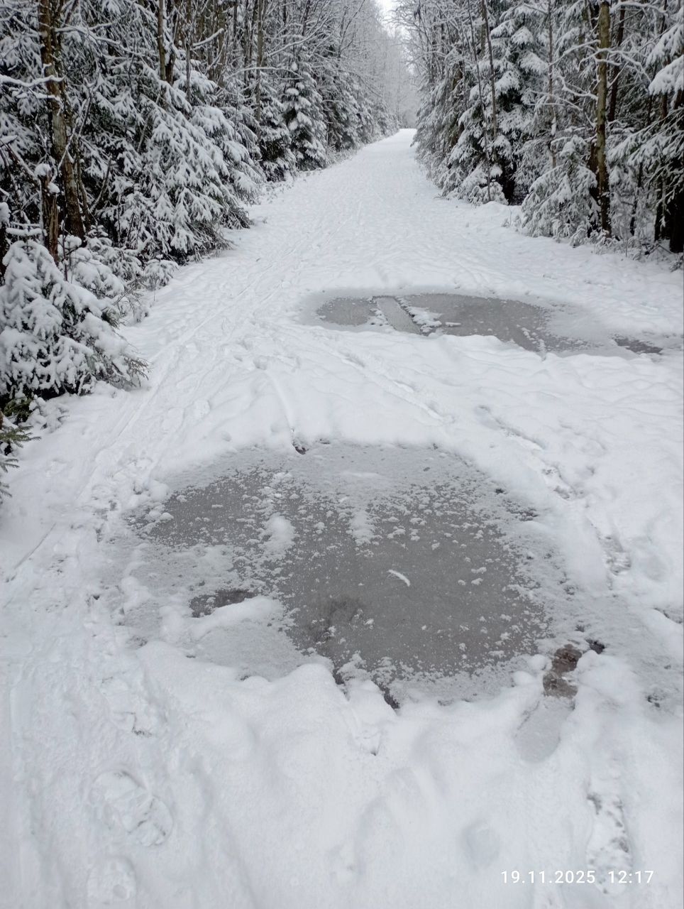 Осельки. Самые отчаянные пошли катать. Камни, ветки, земля едва прикрыты. Лужи замёрзли. Пока только на асфальтовых и очень аккуратно... И лучше ещё снегопадиков подождать...