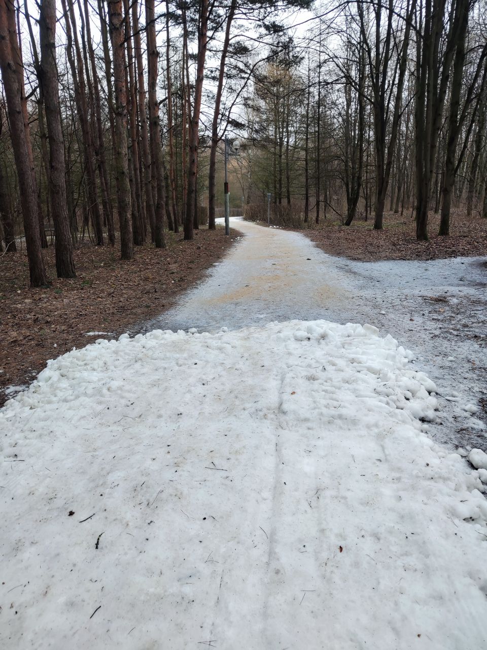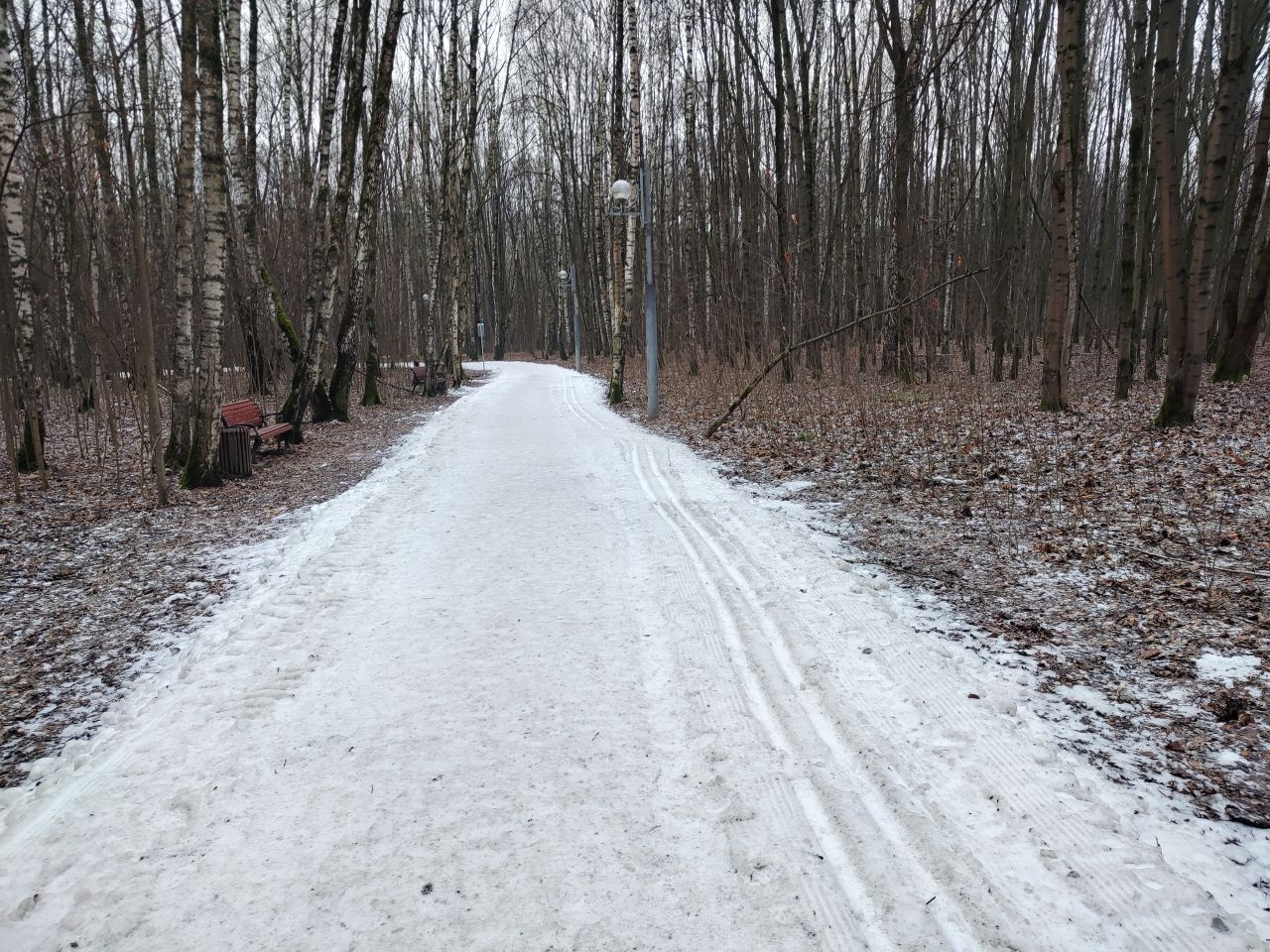 Неожиданно для себя обнаружил небольшой насыпной классический кружок в Тропарёвском лесопарке в районе Липовой аллеи. Подсыпка искусственного снега происходит и на других аллеях