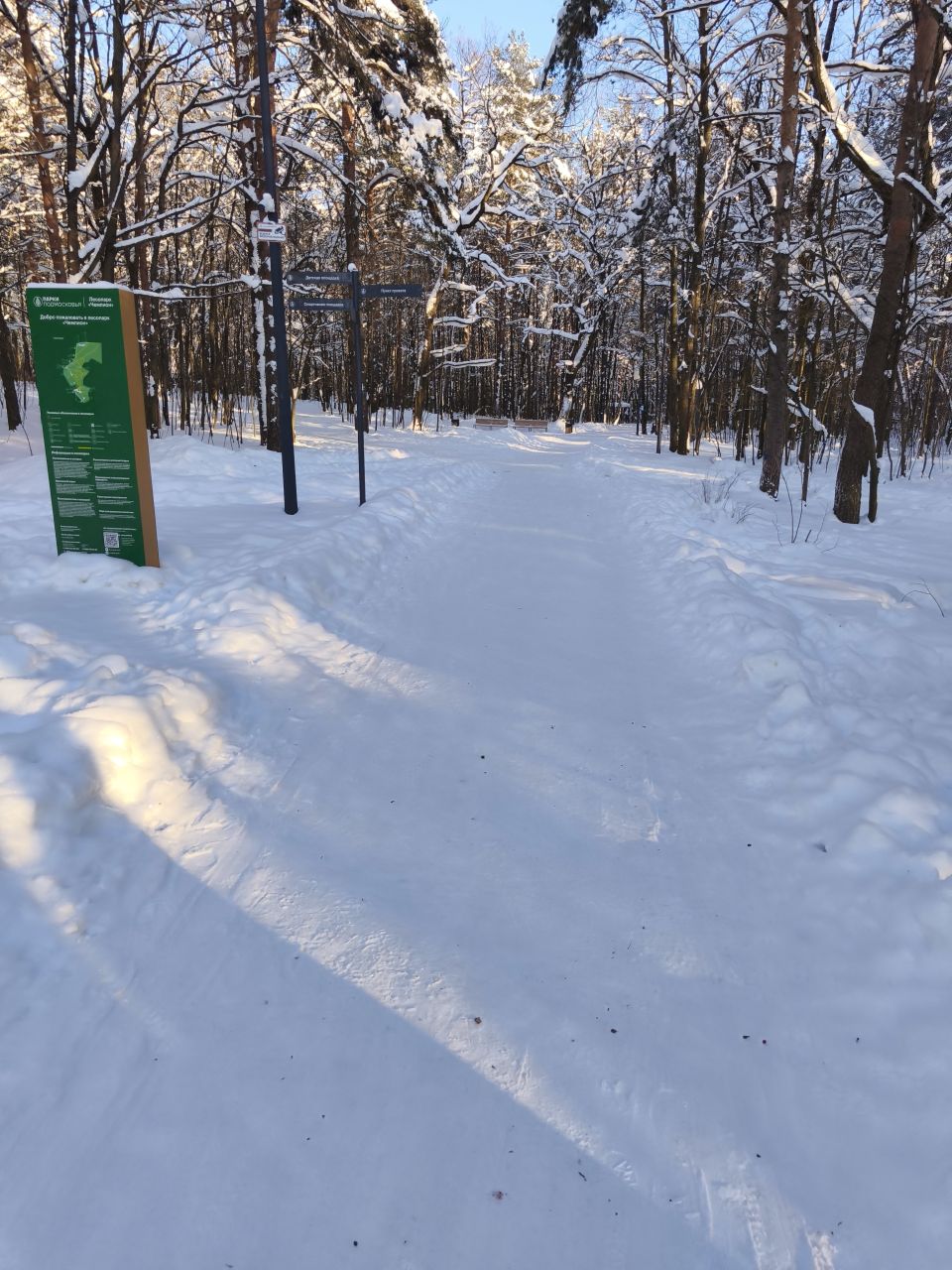 Трасса Натальи Коростелёвой, её нет в списке, а трасса интересная. Это тот-же лесной массив, что и Волкуша, но другой угол, рядом с Дзержинским-Угрешей. Обрабатывается снегоходом, есть классика. Рельеф серьёзный, длинные спуски-подъёмы.