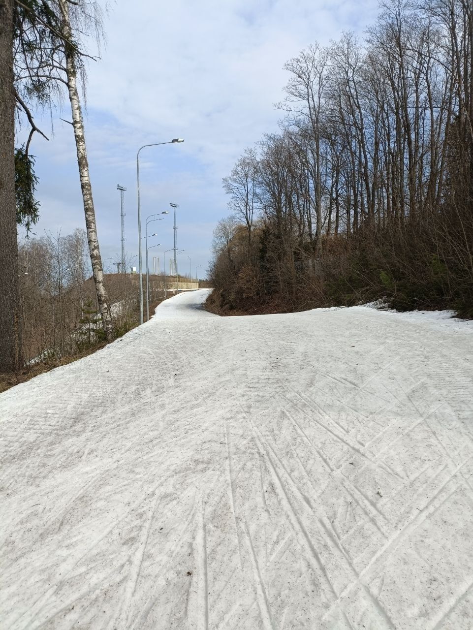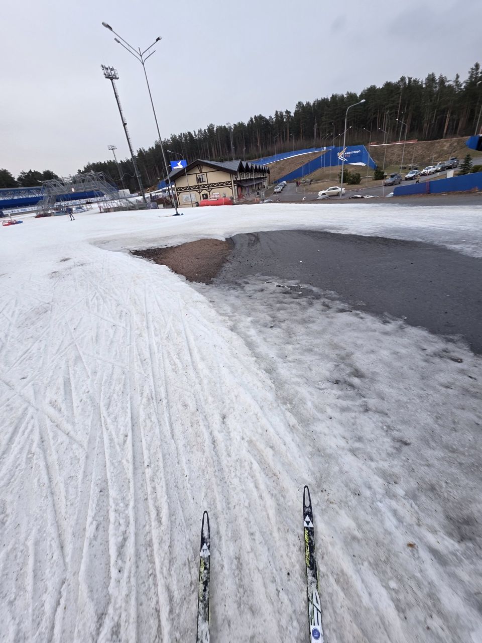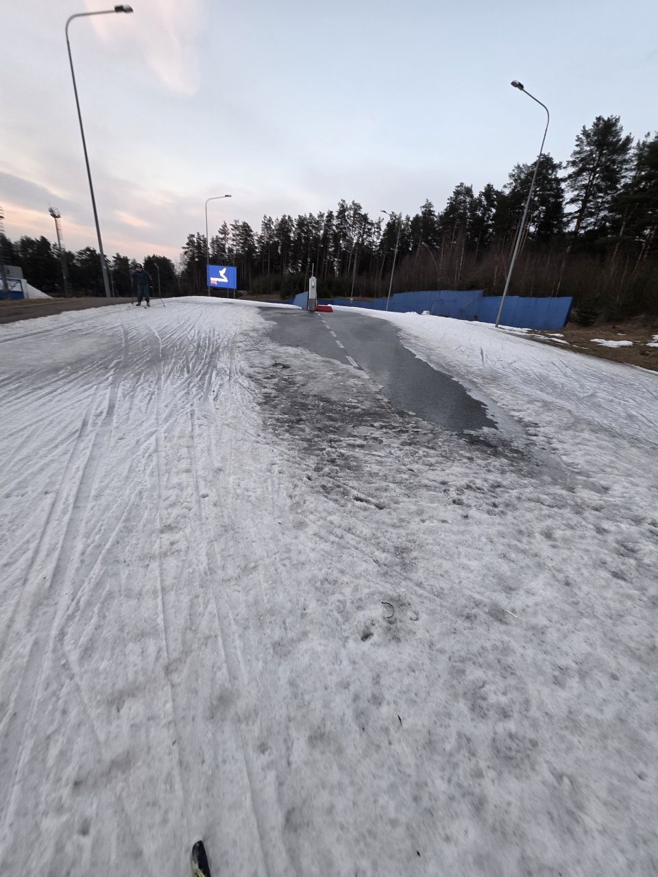 #УТЦ рыхленько, лыжи на удивление катили. Наверно потому что снег скорей со льдом, чем водянистый. Хорошая лыжня на спуске только с моста, со спуска перед длинным тягуном тоже есть, похуже.