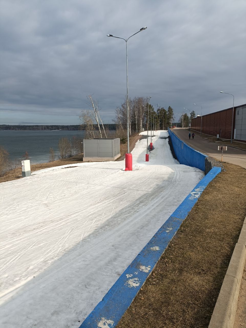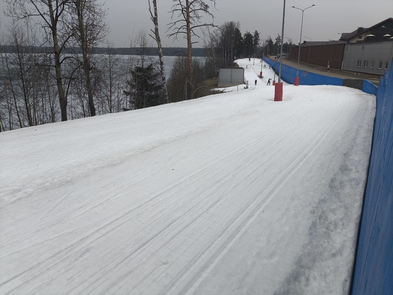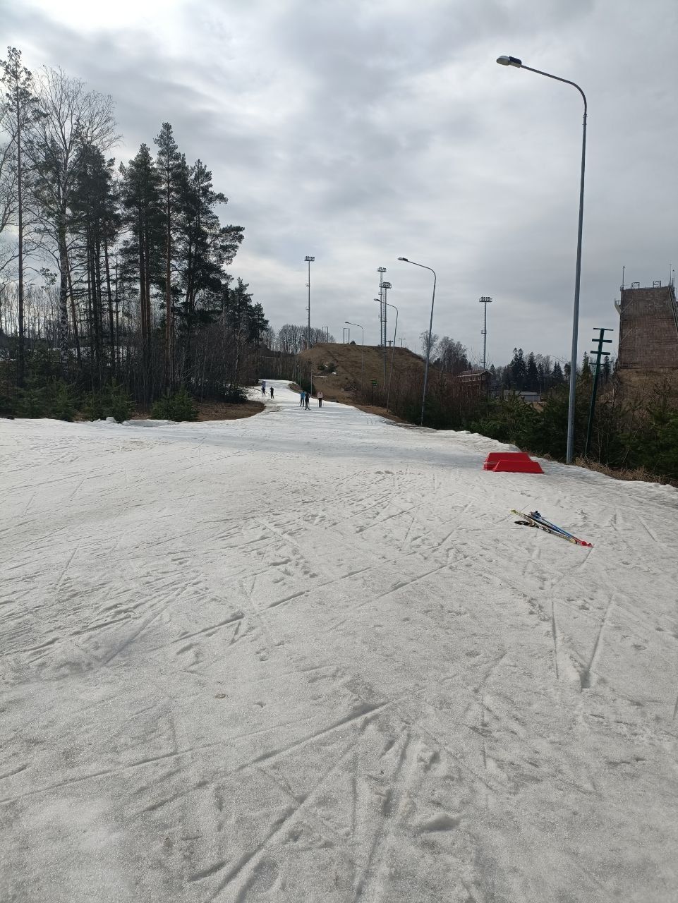 #УТЦ рыхленько, лыжи на удивление катили. Наверно потому что снег скорей со льдом, чем водянистый. Хорошая лыжня на спуске только с моста, со спуска перед длинным тягуном тоже есть, похуже.