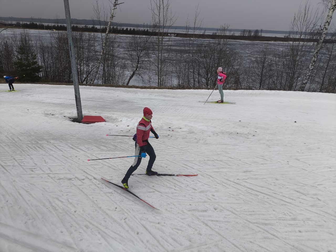 Самый длинный спуск без лыжни, с него хорошо тренировать технику переступания обеими лыжами чтобы не упасть. Что-то даже получалось