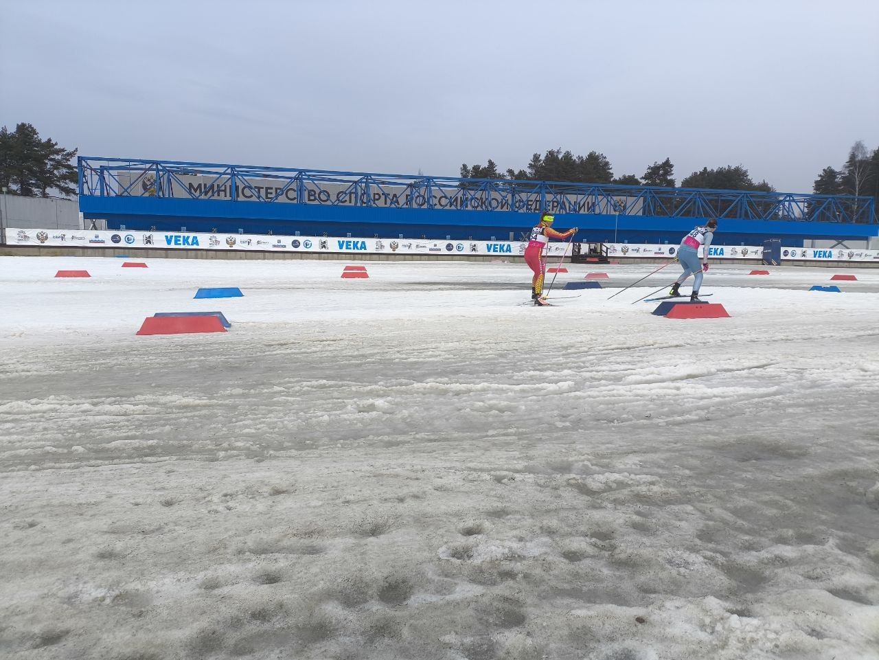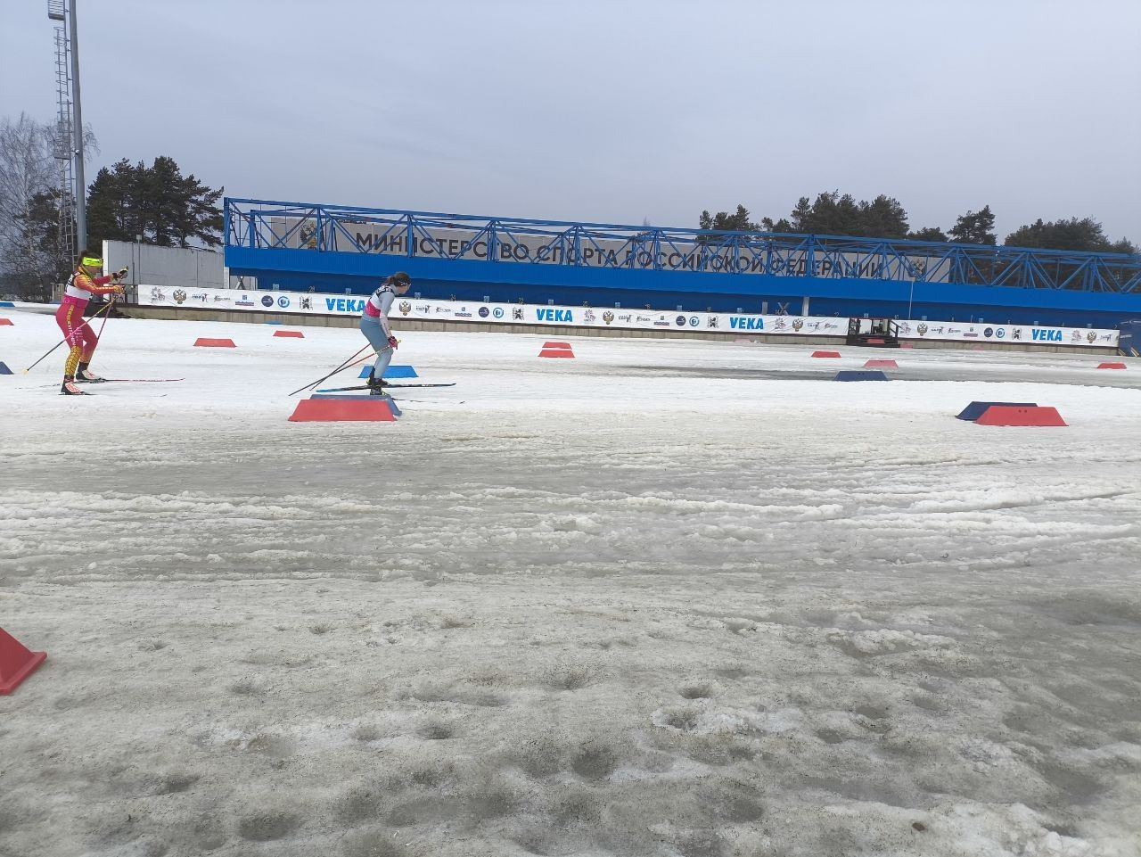 Сегодня у нас проходят соревнования по лыжным гонкам, спортсменам двигаться нелегко.