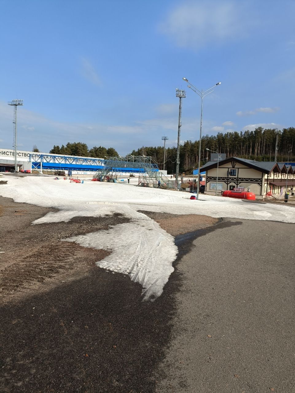 Стадион останется до первого дождя, или ещё максимум на 1-2 дня без осадков. По трассе есть места с хорошей подушкой, которые могут сохраниться до двух недель сегодняшней погоды.