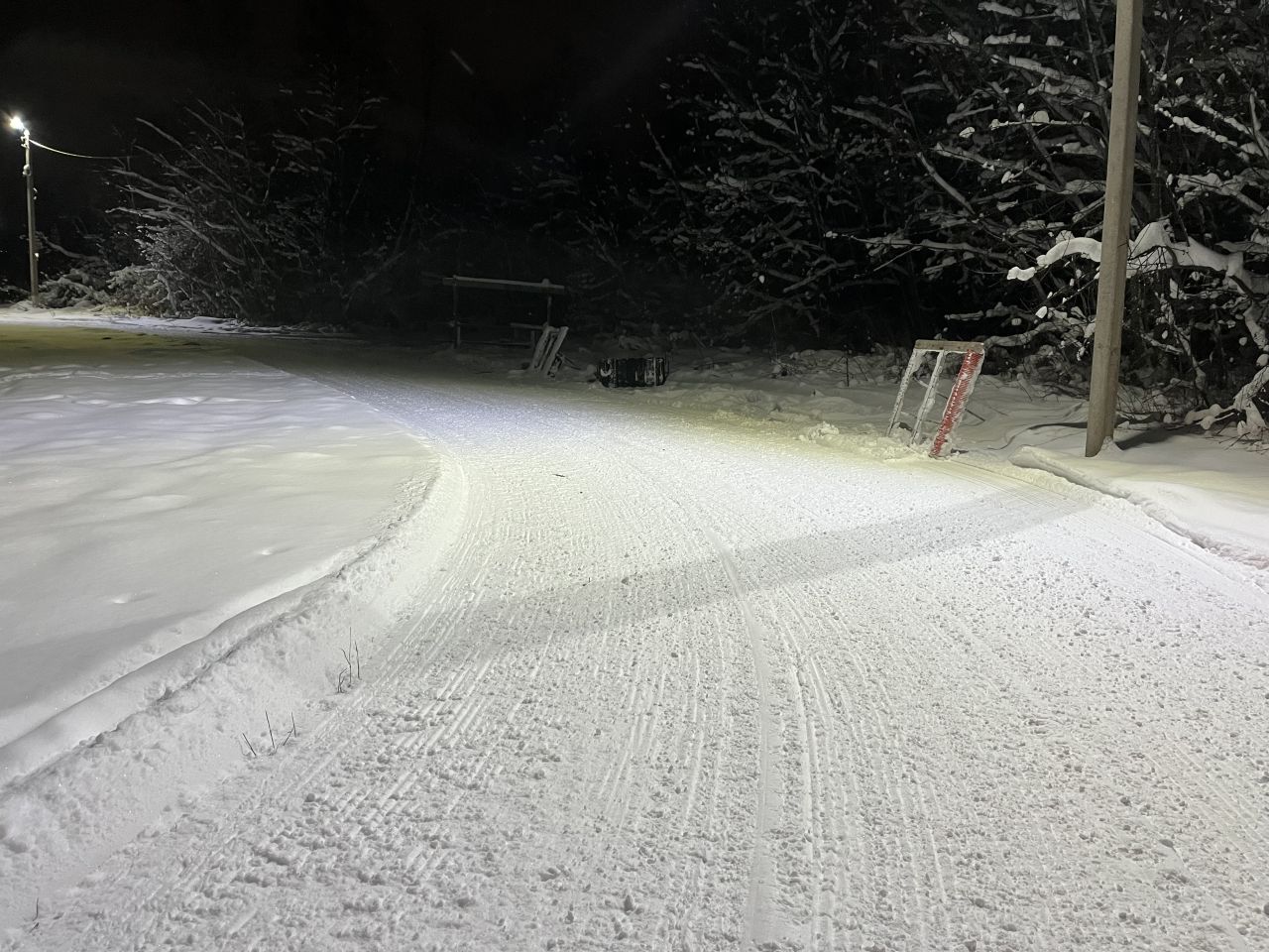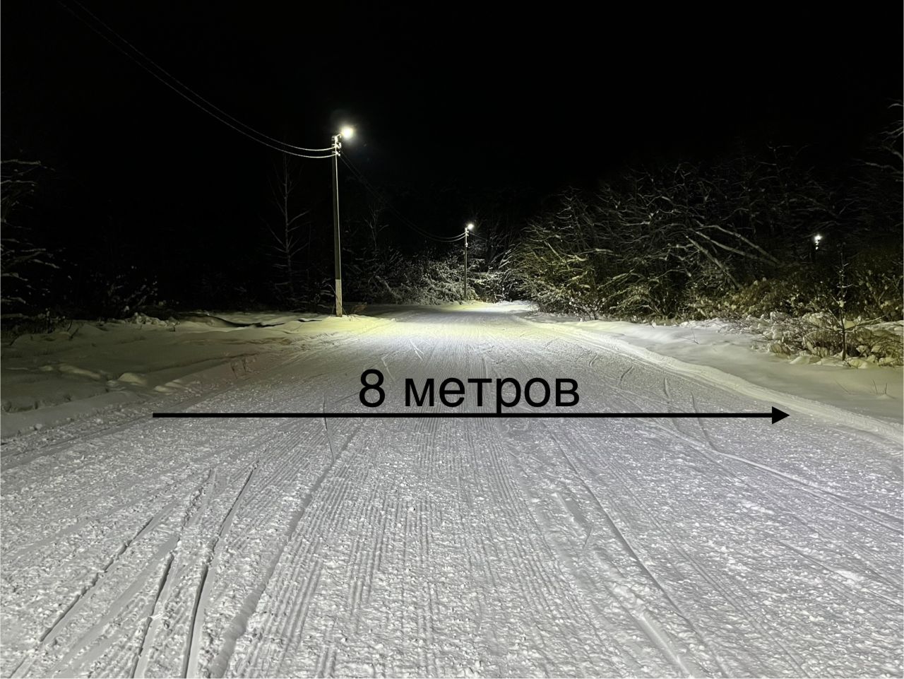 Полотно выравнено, установлено освещение. Освещение работает каждый день с 16 до 23 часов.