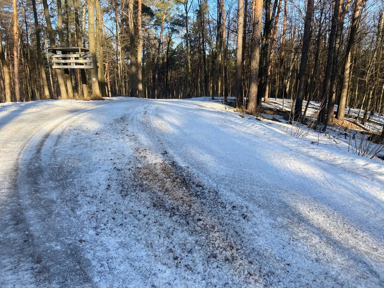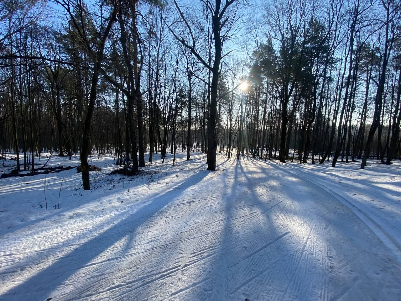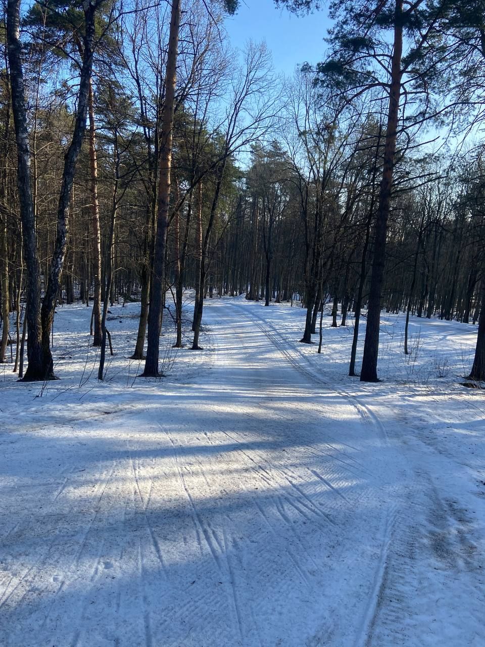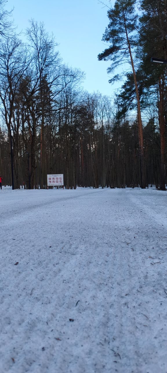 С 7:30 до 9:00 на градуснике было -3С, подготовлен круг с классикой 9 км (по garmin’ам). Трасса в хорошем состоянии, ровная, леденистая с Фирном. Снег чистый белый или бурый от иголок, из мусора только шишки попадаются. Пару проблемных участков на верху подъемов, проезжаемы.