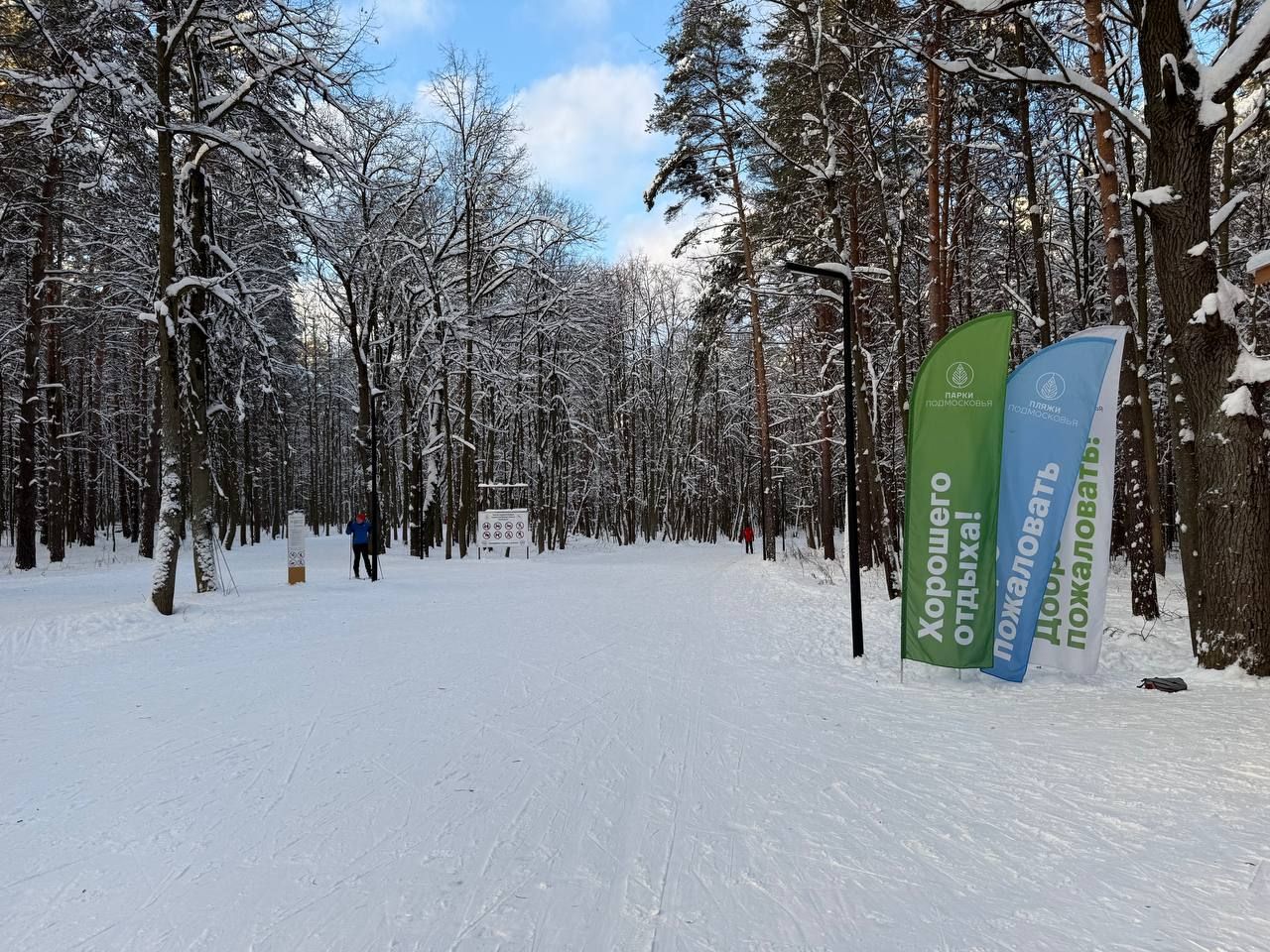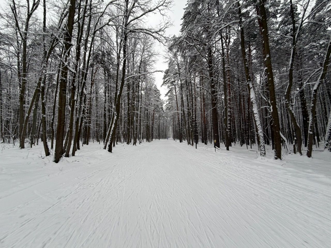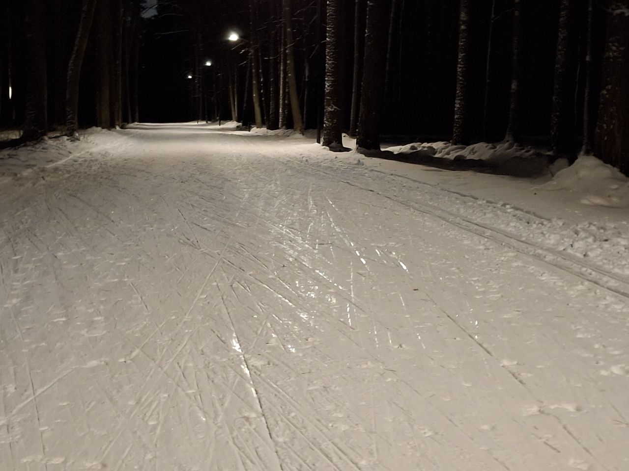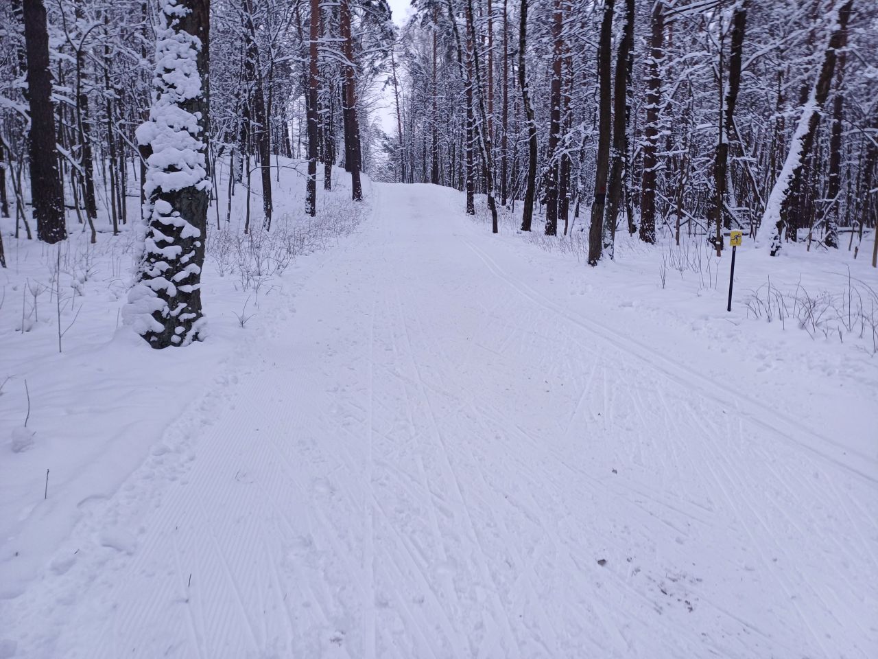 Трасса в отличном состоянии, отратрачено, по всей длине есть лыжня для классики.