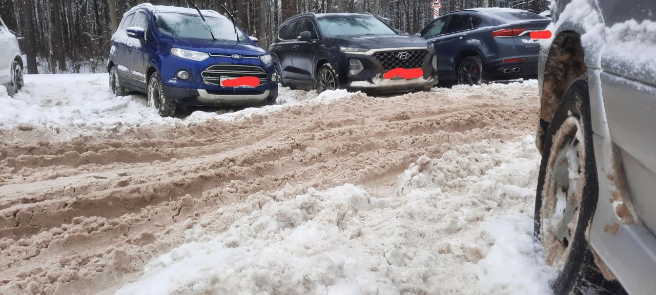 На парковке движуха, всегда кто-то заезжает, кто-то выезжает. Парковка организована кольцом, поэтому, если нет мест, можно сделать несколько кругов, и кто-нибудь уедет. Парковка почищена, автомобиль типа пузотер легко там едет. При выезде на Лыткаринское ш. в сторону новорязанки снежный сугроб напрочь закрывает обзор. Спасают только те, кто заворачивает оттуда на Волкушу.