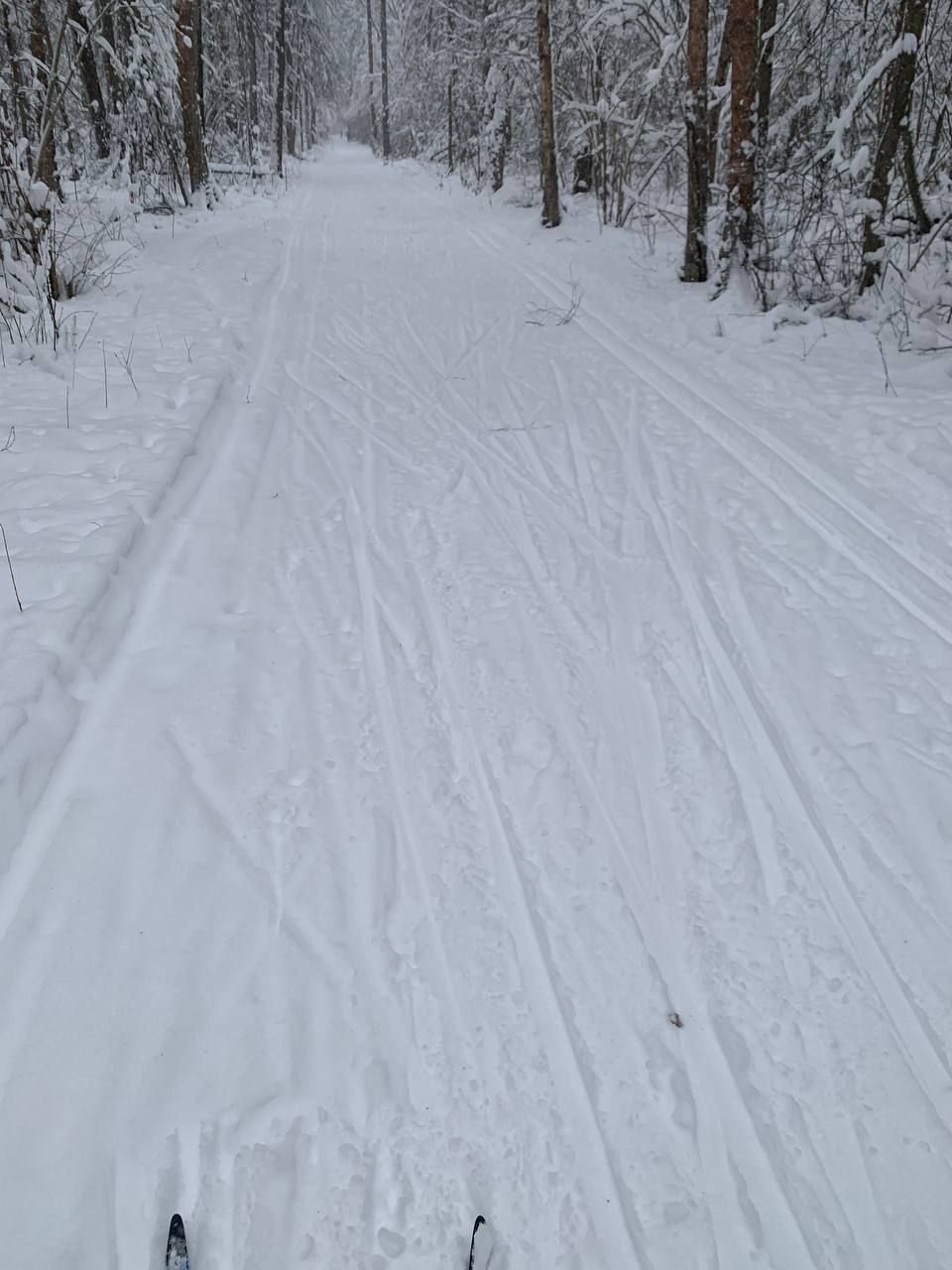На 3 и 5 км можно кататься, хоть и состояние наверное на троечку, после первого спуска следов практически нет, может если только единичные следы от классики, по лесу ездил снегоход, думал укатывают трассу, а оказалось это были МЧСники. Пункт проката, как мне показалось глядя со стороны не работает(может потому что 31 число, а может не работать в принципе), парковка не чищена. Для двух часов дня 31 декабря народу было достаточно. Печалят слухи о закрытии трассы на реконструкцию, самое то в сезон то 👍