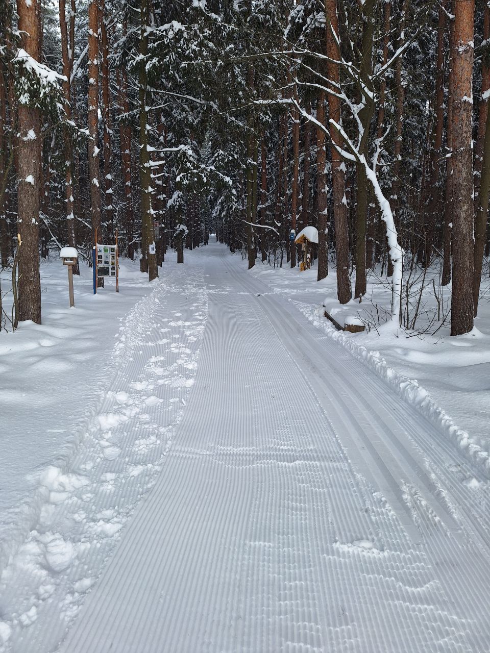Коньком ездить невозможно. Там какой-то неразумный собрат покатался на квадроцикле и разбил все дорожки. Более менее выжили классические лыжни.