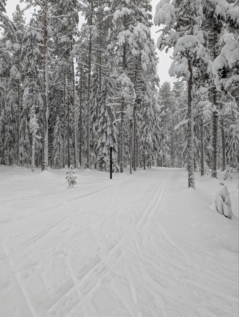 Основа плотная есть и по щиколотку пухляка. На большом круге до нас одинокий след, уезжали - лыжников стало больше. Получилось около 9 км (это не сам большой круг, а с заездом в серединку).