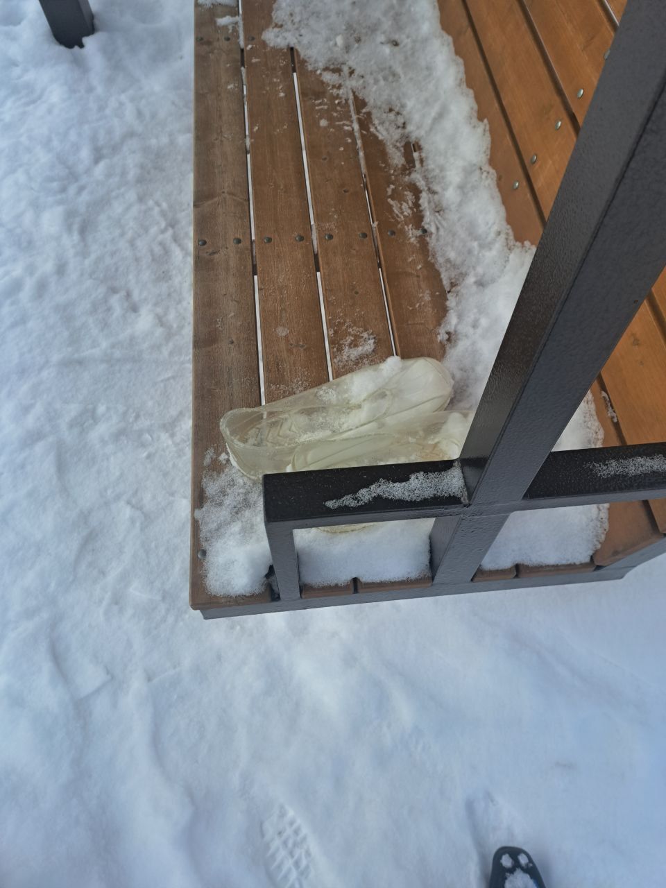 Кто-то забыл колошки -я их отнесла на качельки, чтоб совсем снегом не занесло. Хозяин найдись!