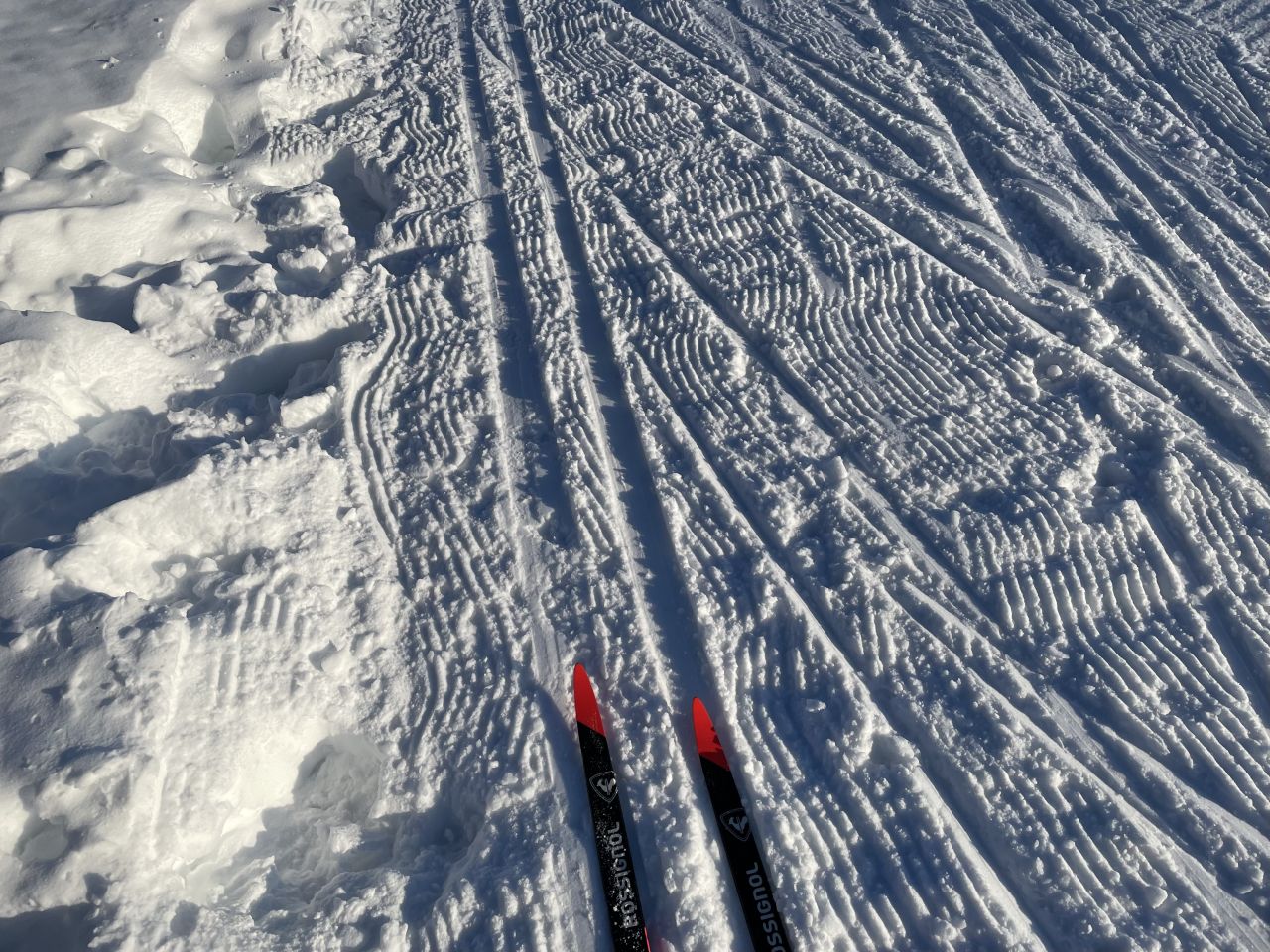 Трасса в плохом состоянии, после снегопадов как будто вообще не готовилась. Спортсмены укатали конек, любители и ветераны классику. По классике гораздо лучше. В целом ехать можно, но рассчитываете на мягкий рассыпчатый снег, в который лыжи будут проваливаться.