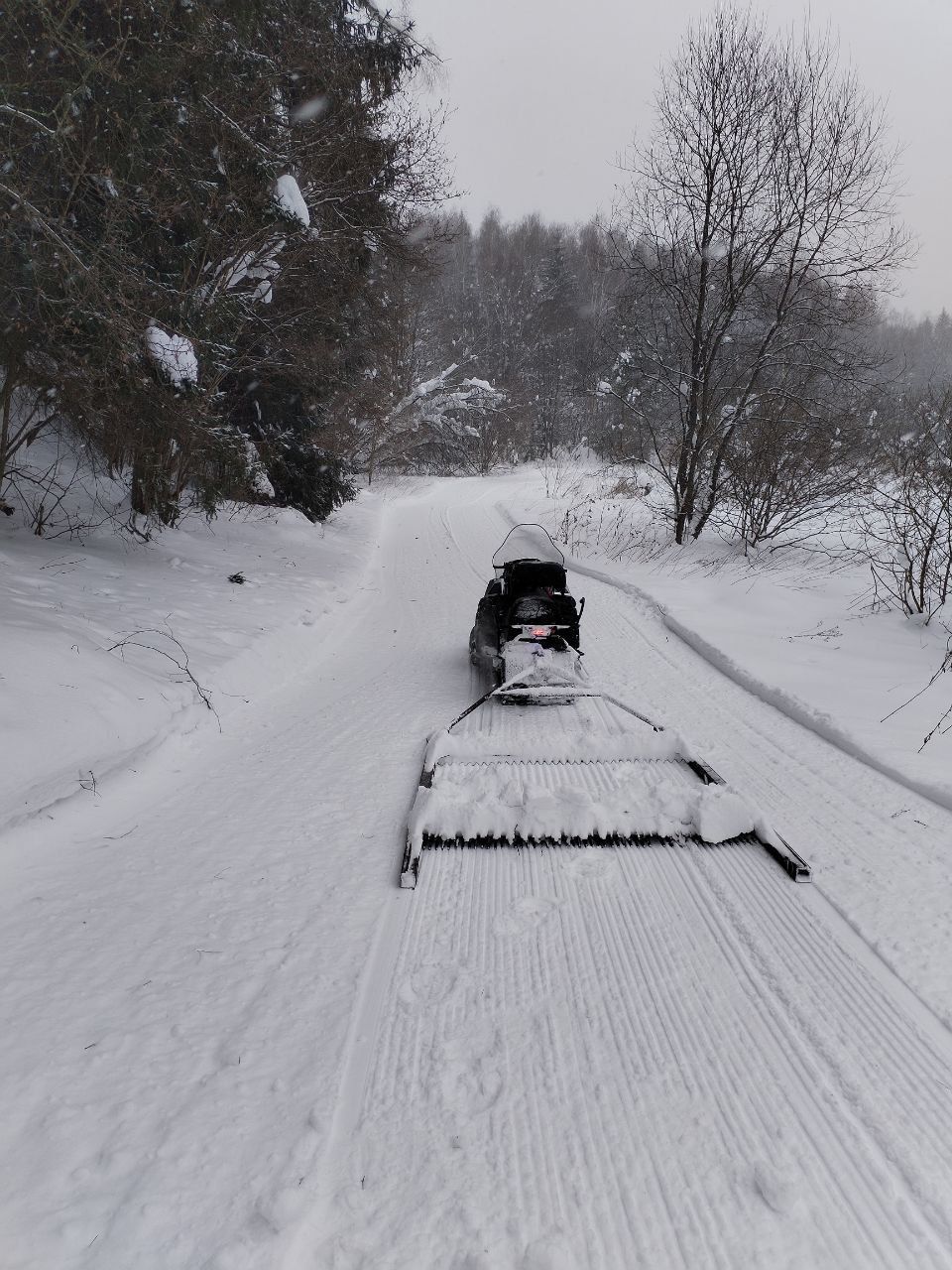 Сергей Крайнов закатал бороной Зубец, поле и дорогу до Биатлонки! Но снегопад продолжается…
