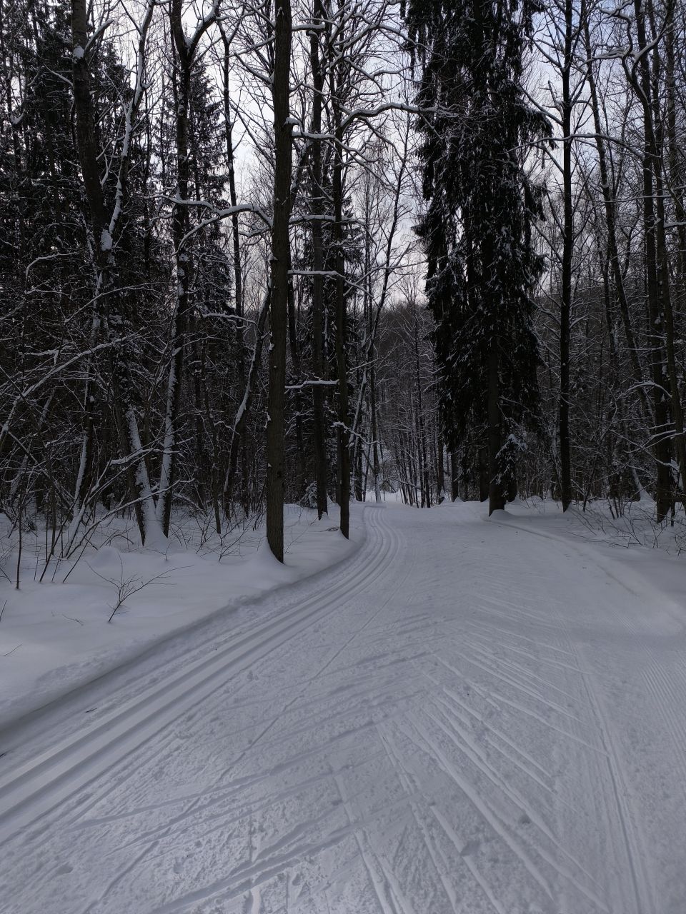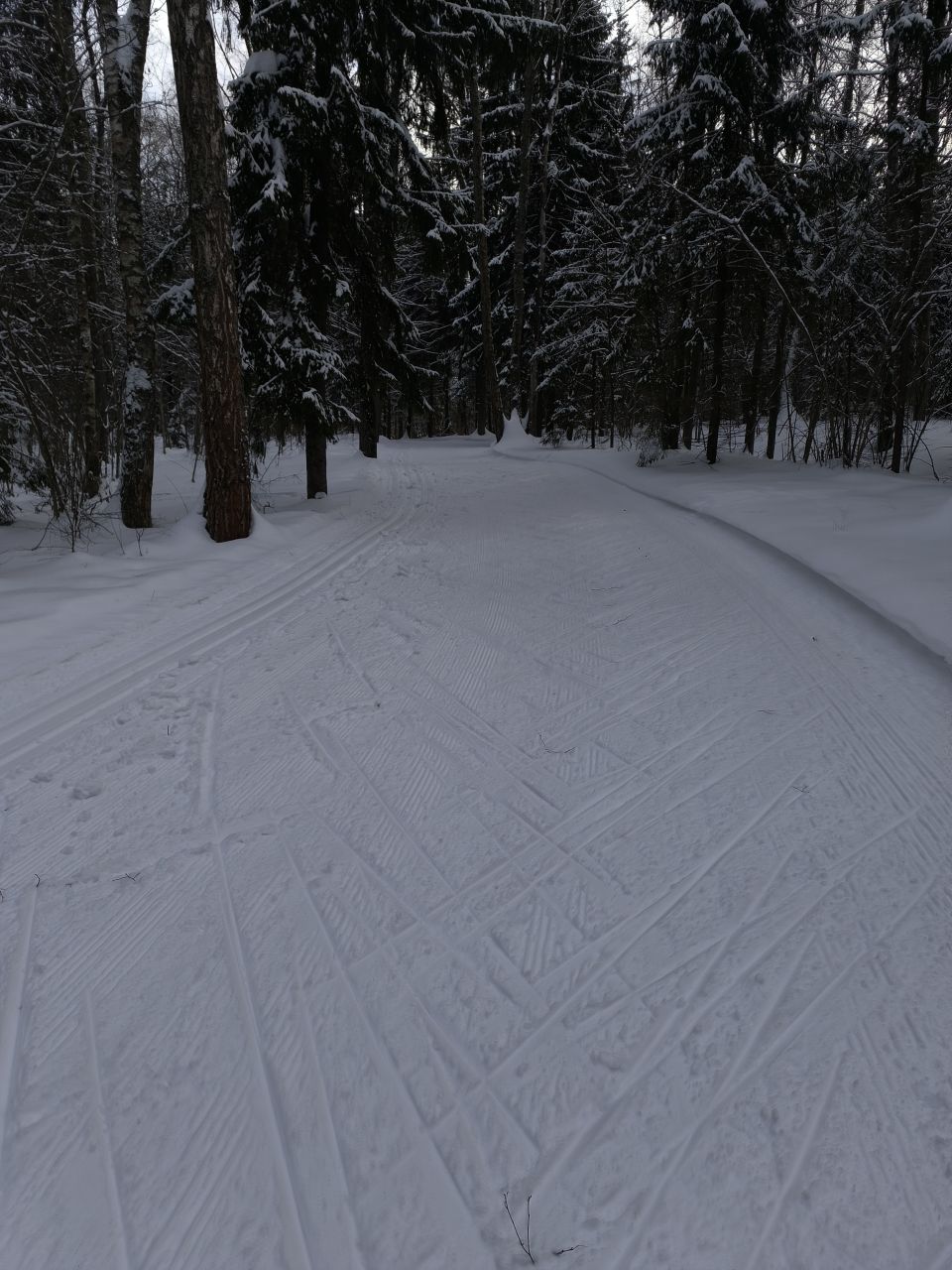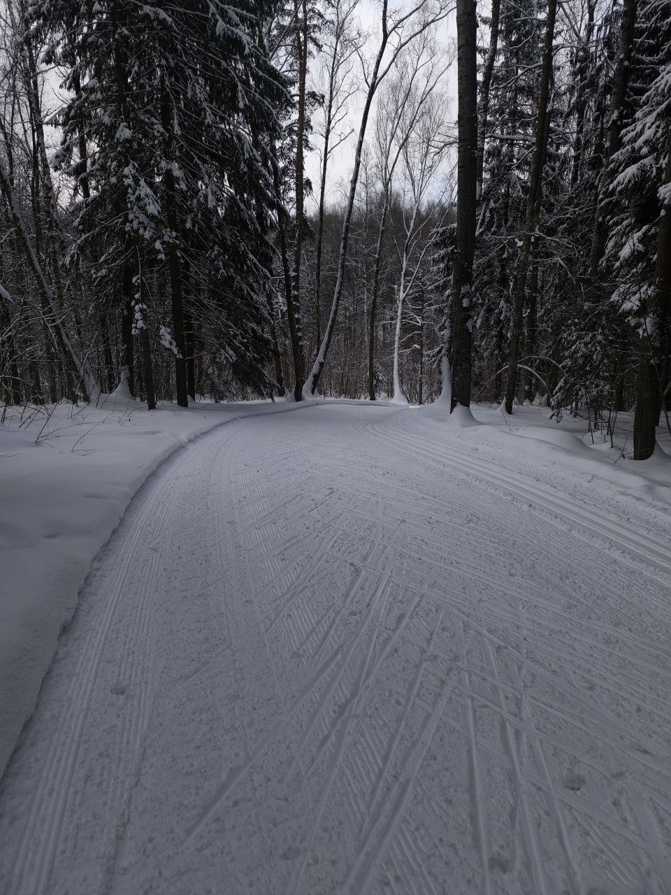 Поле огонь. Сегодня можно и толкаться и катить. Траектории на спусках — идеальны, все спуски в лыжне проезжаются!